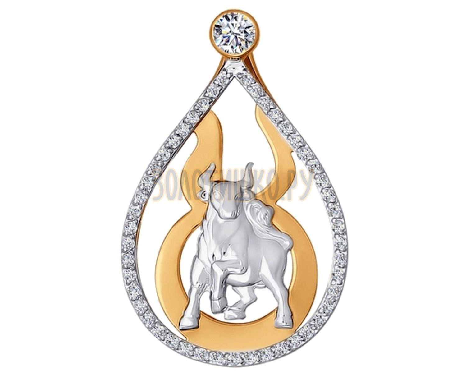 Подвеска знак зодиака Телец с фианитами артикул 034715