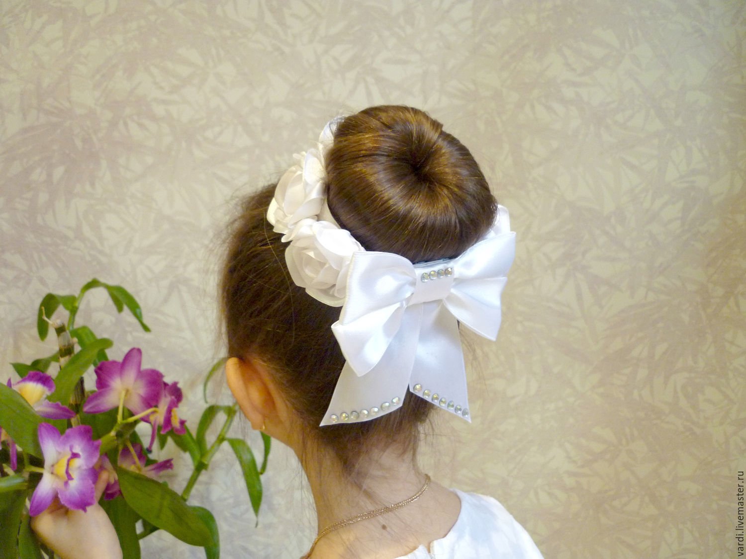 Прическа на 1 сентября для девочки гулька