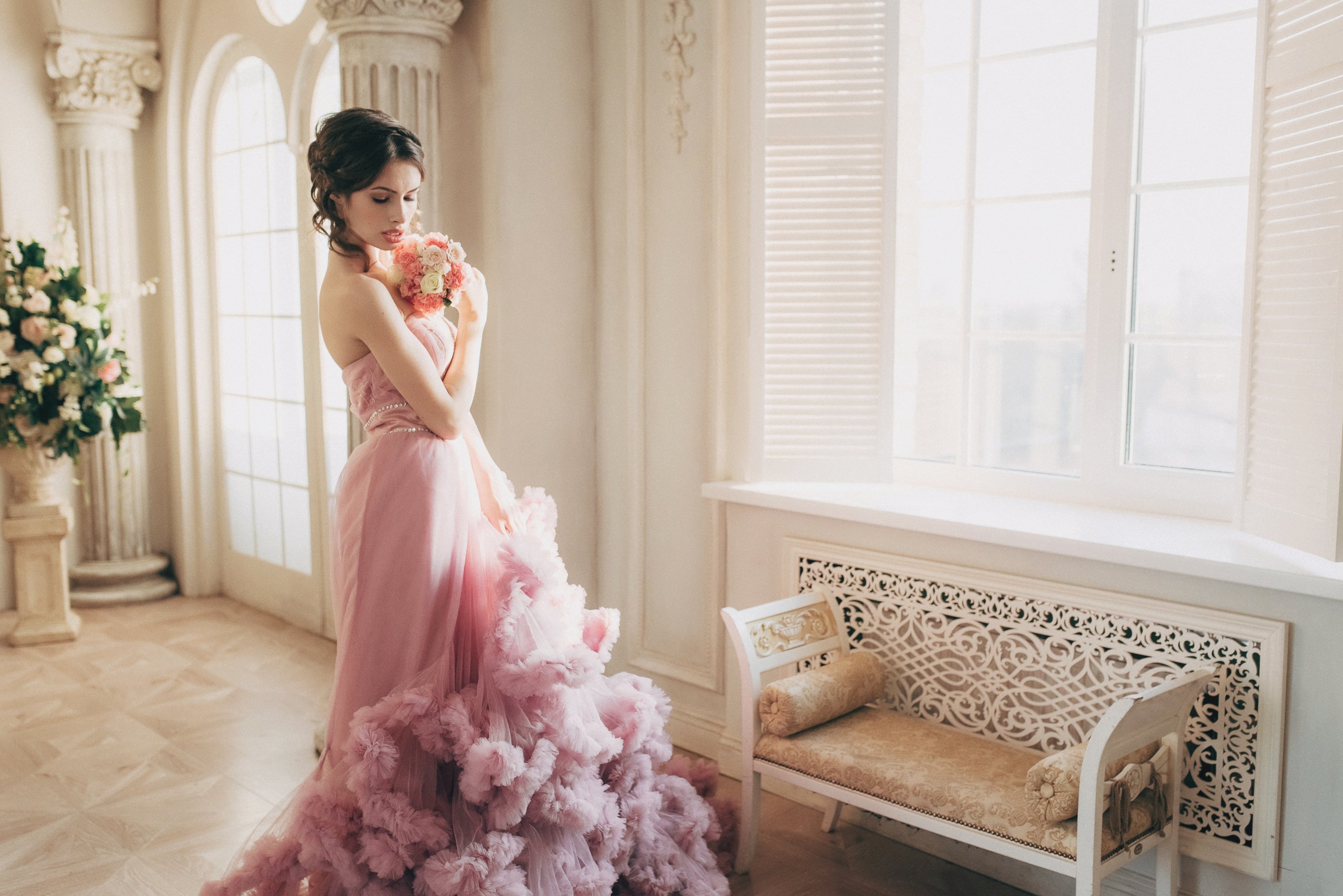 Фотосессия в розовом платье