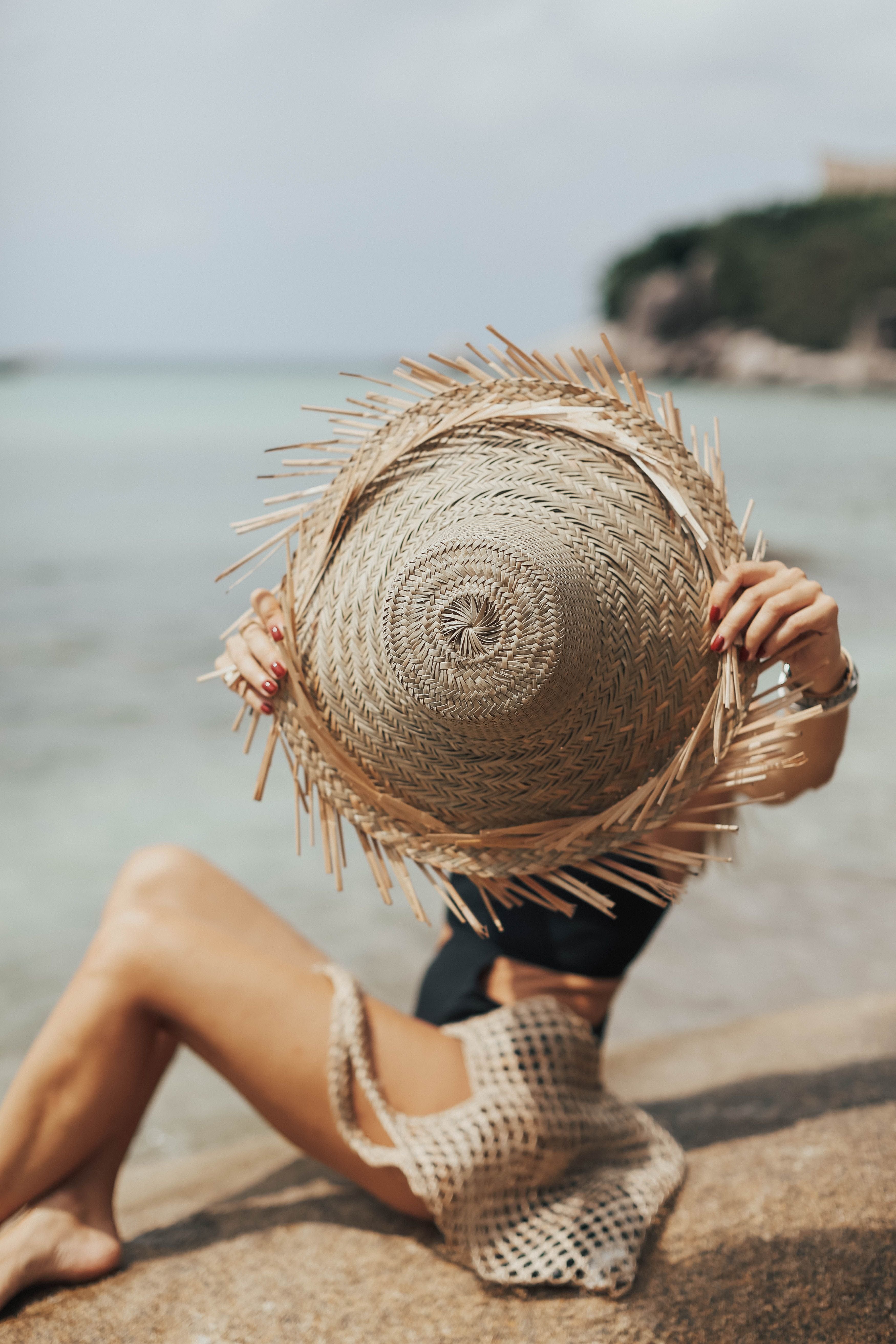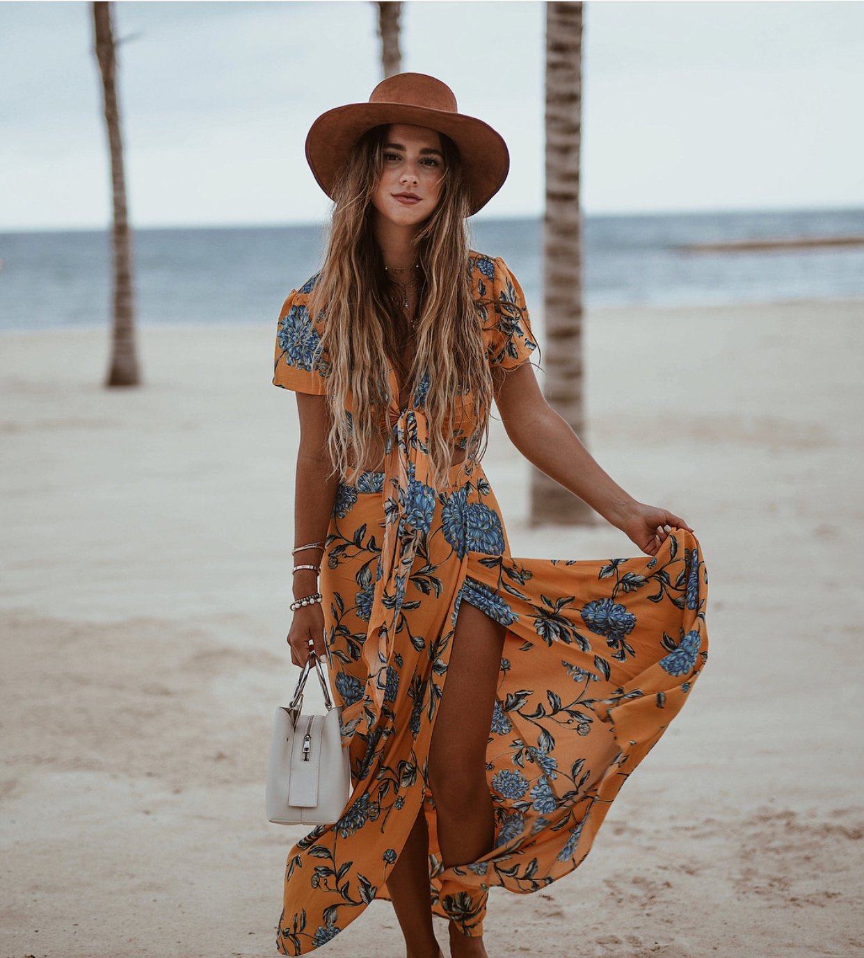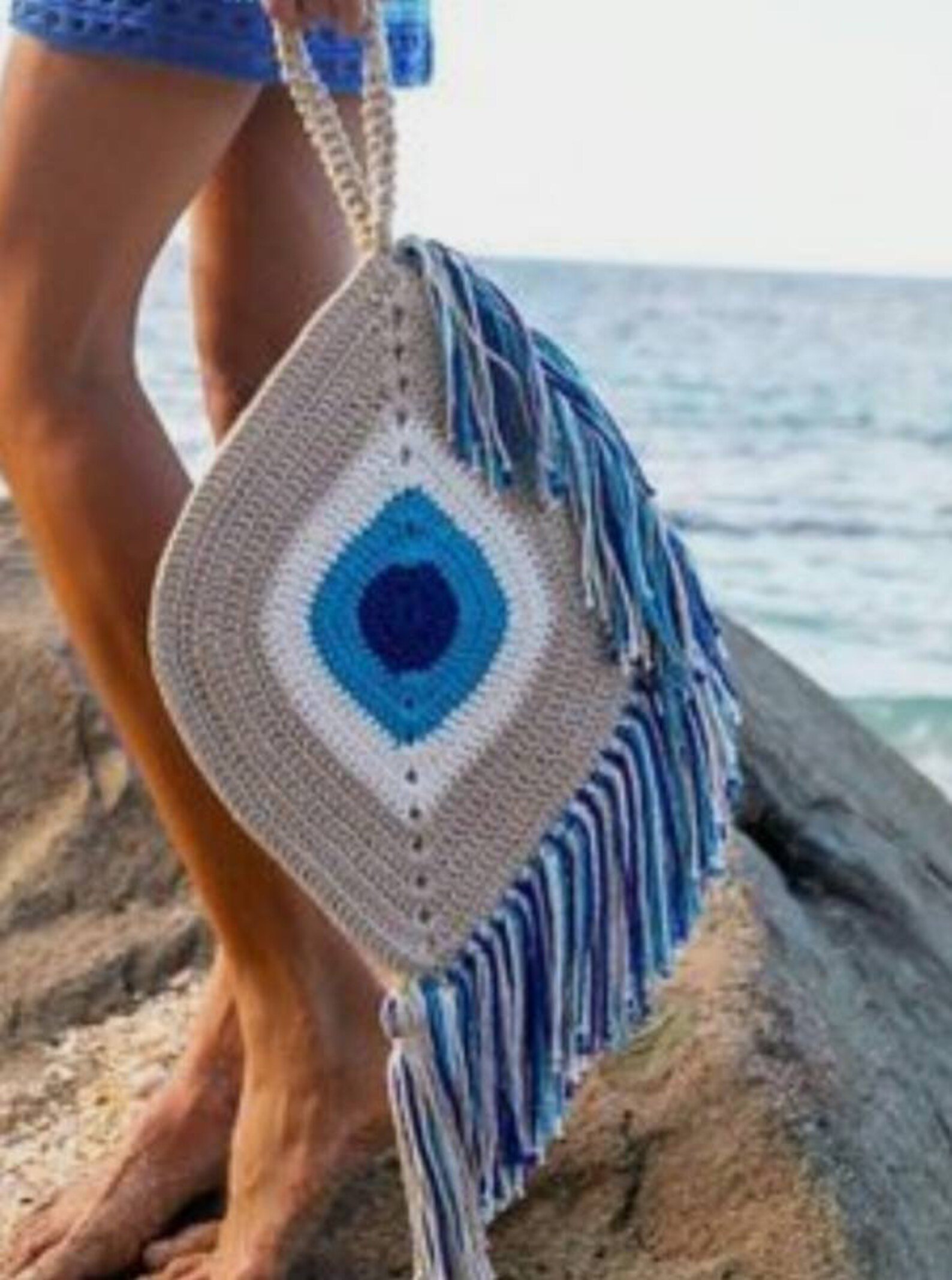 Девушка на море с сумочкой