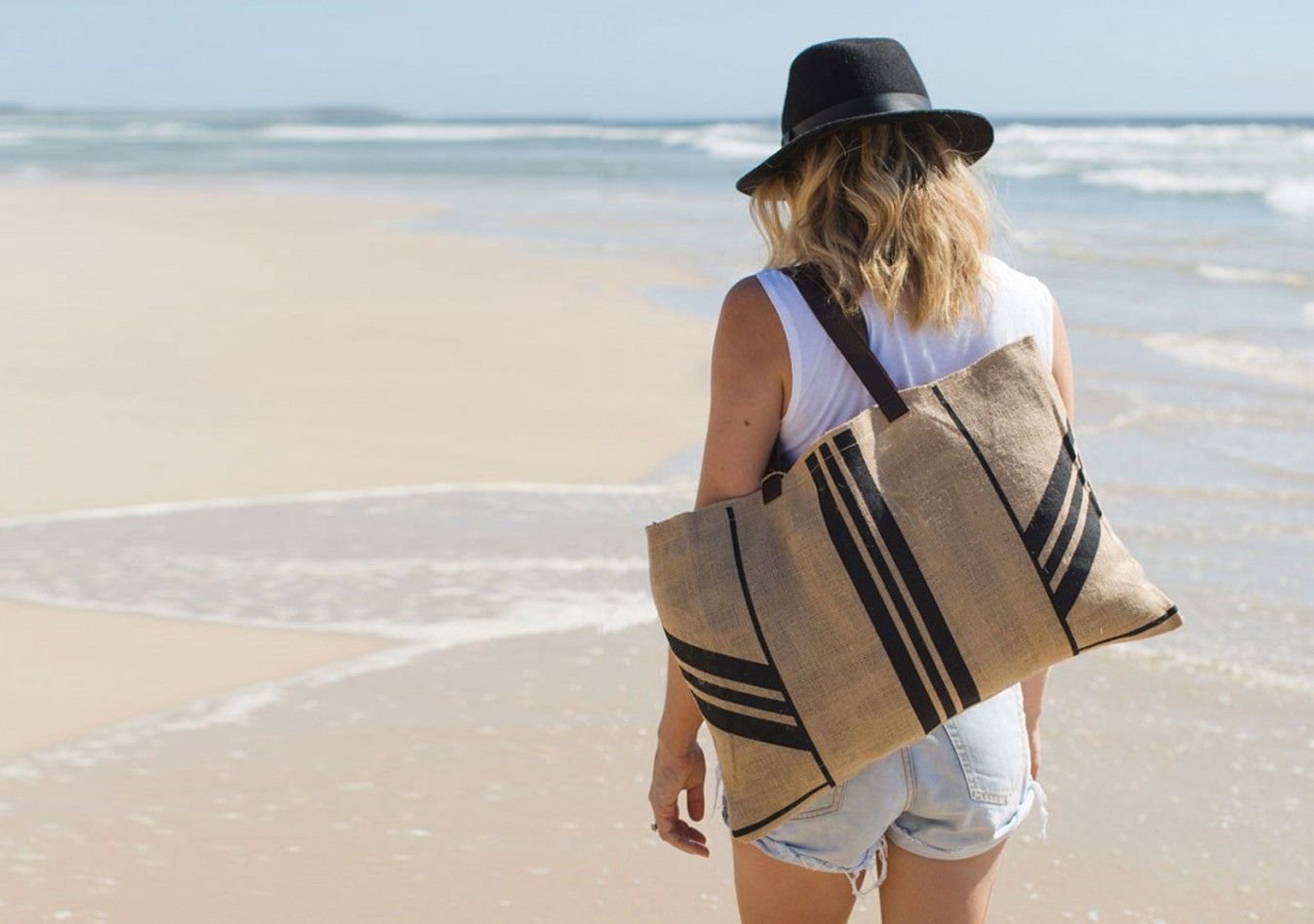 Девушка с сумкой на пляже