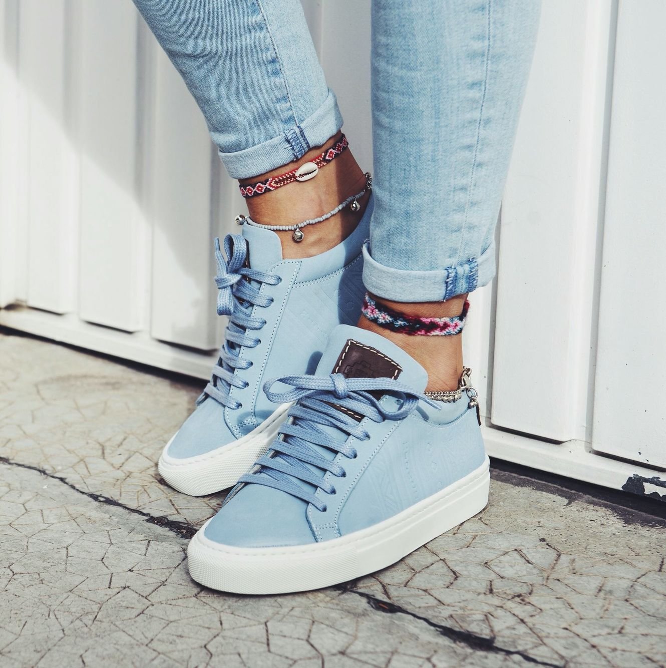 Голубые кроссовки на ногах