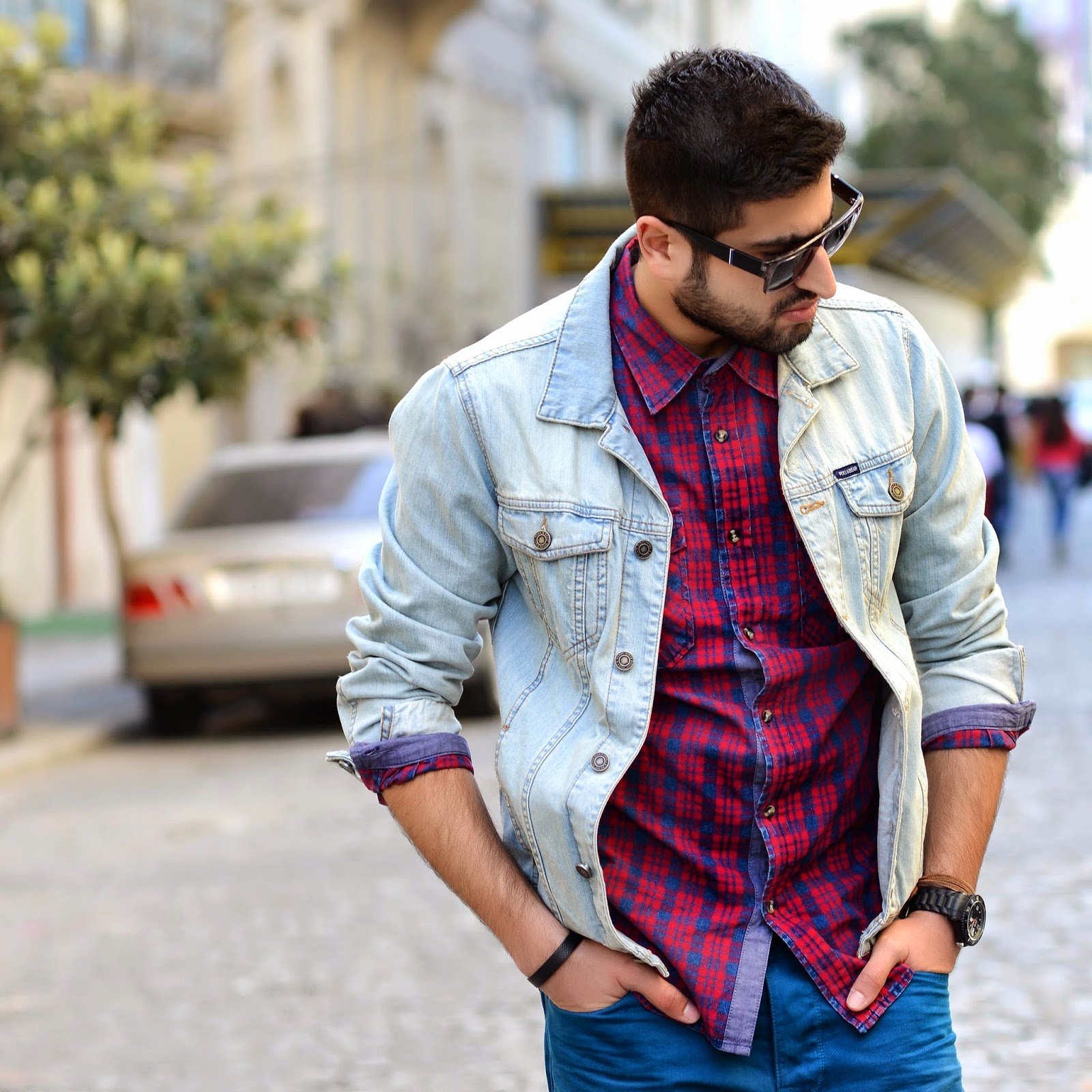 Клетчатая рубашка и джинсы мужские