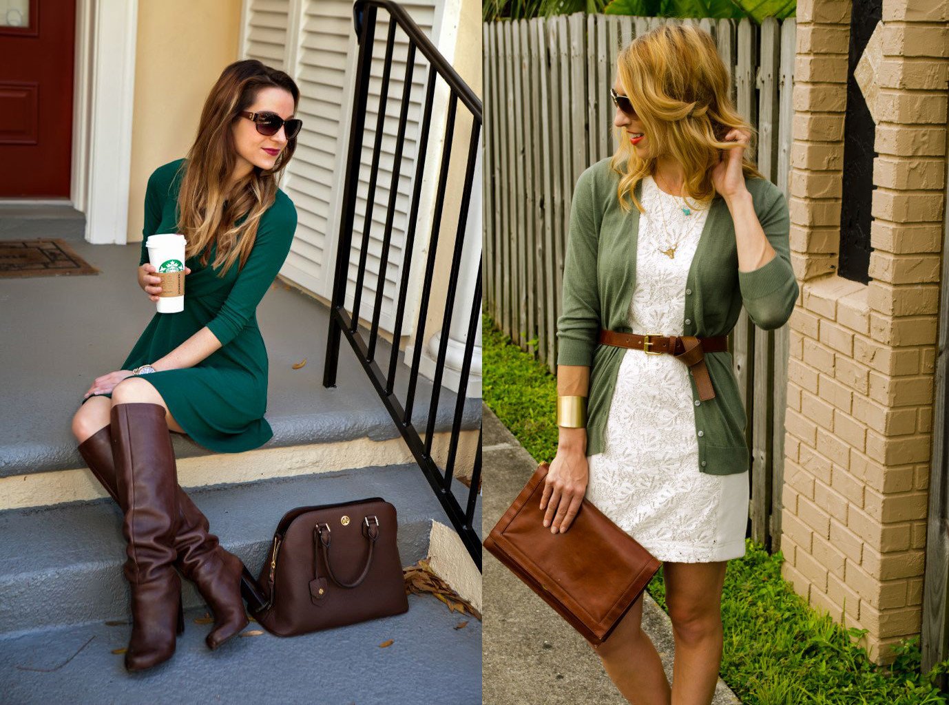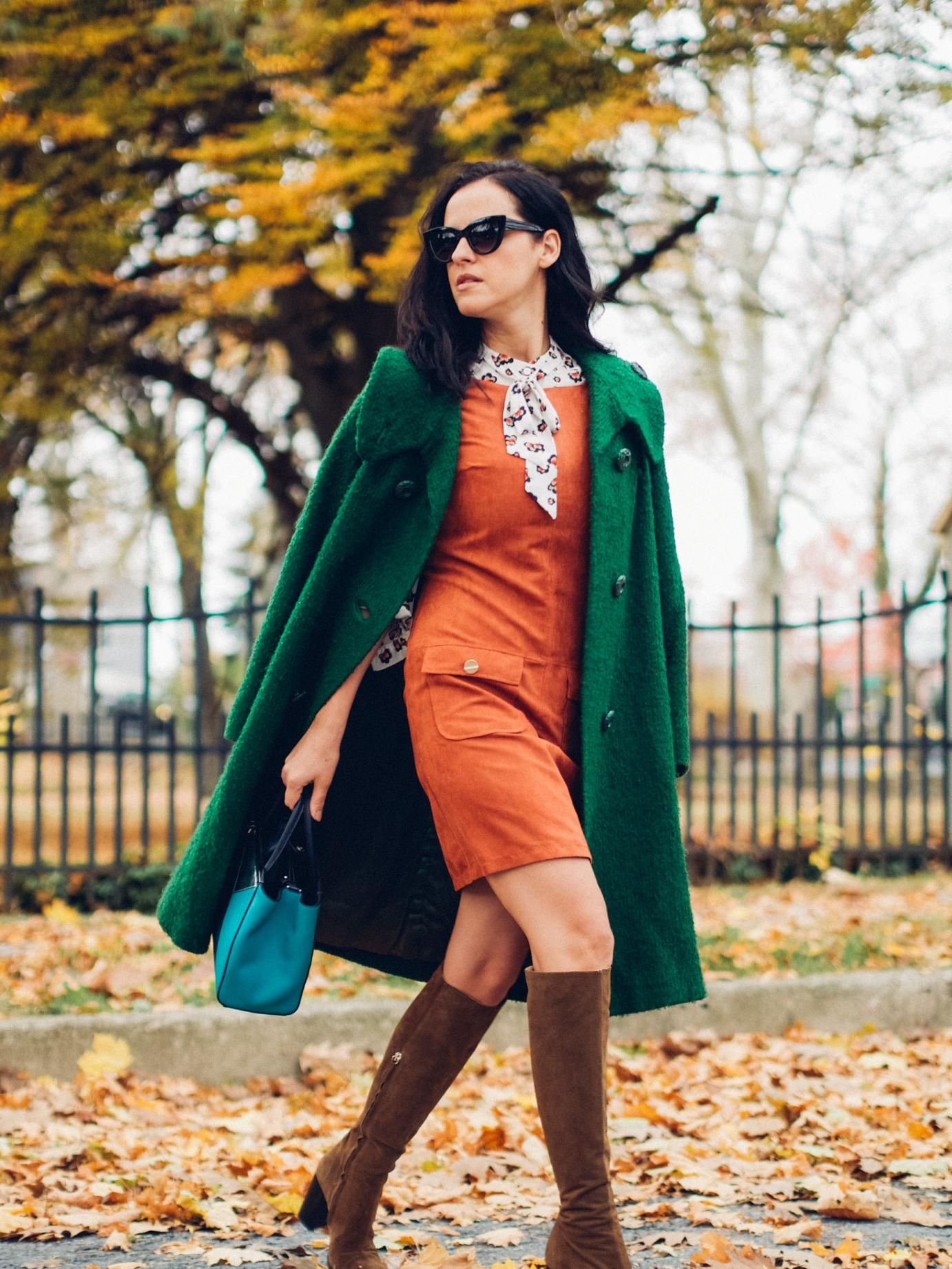 Зеленое платье коричневые сапоги