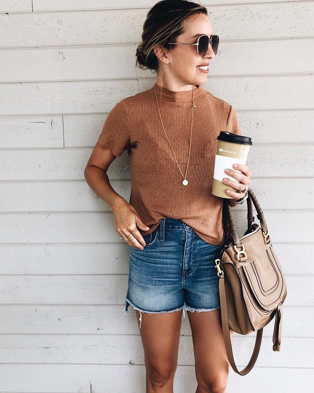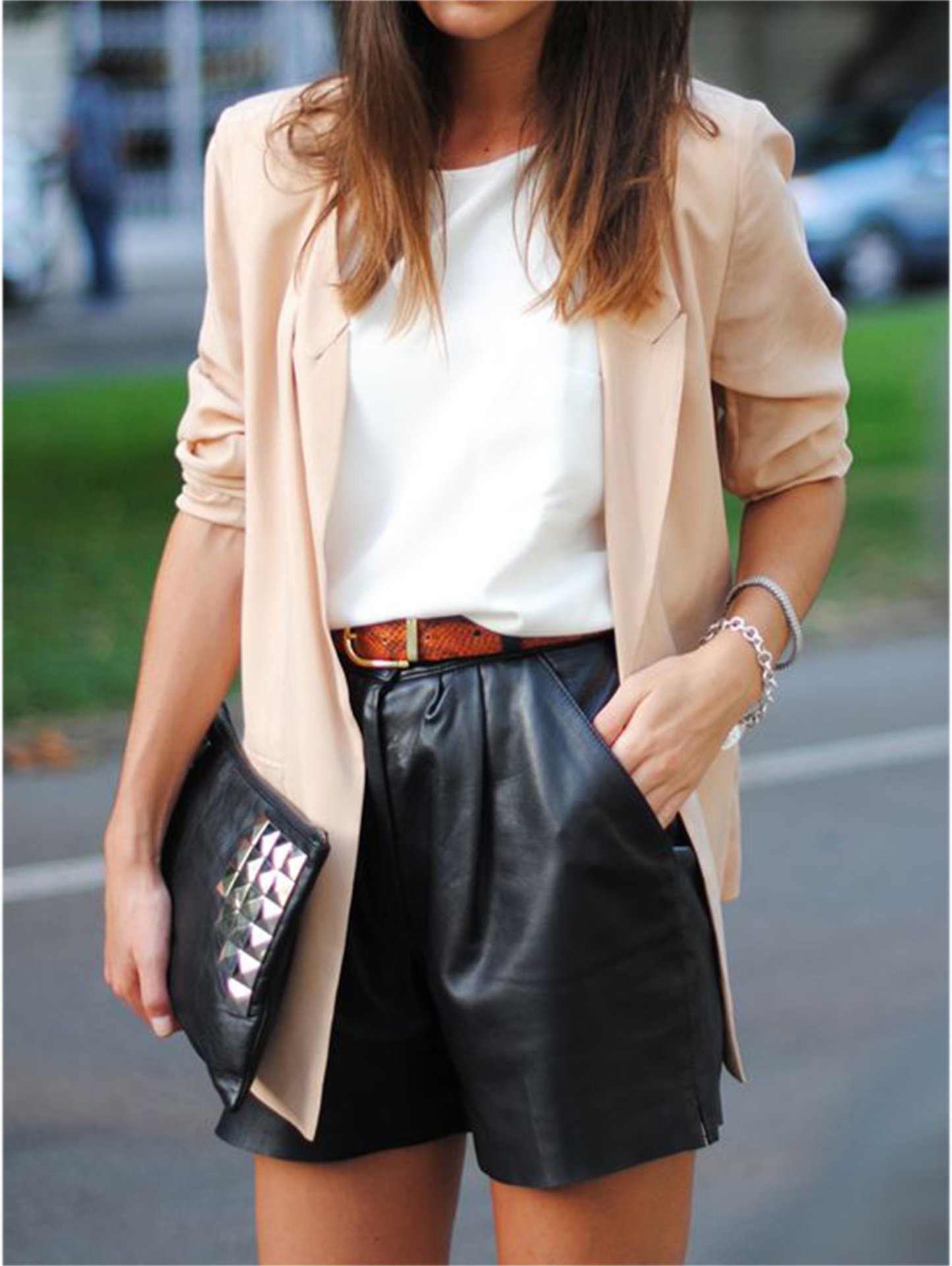 С чем носить кожаные шорты бежевого цвета весной 2022