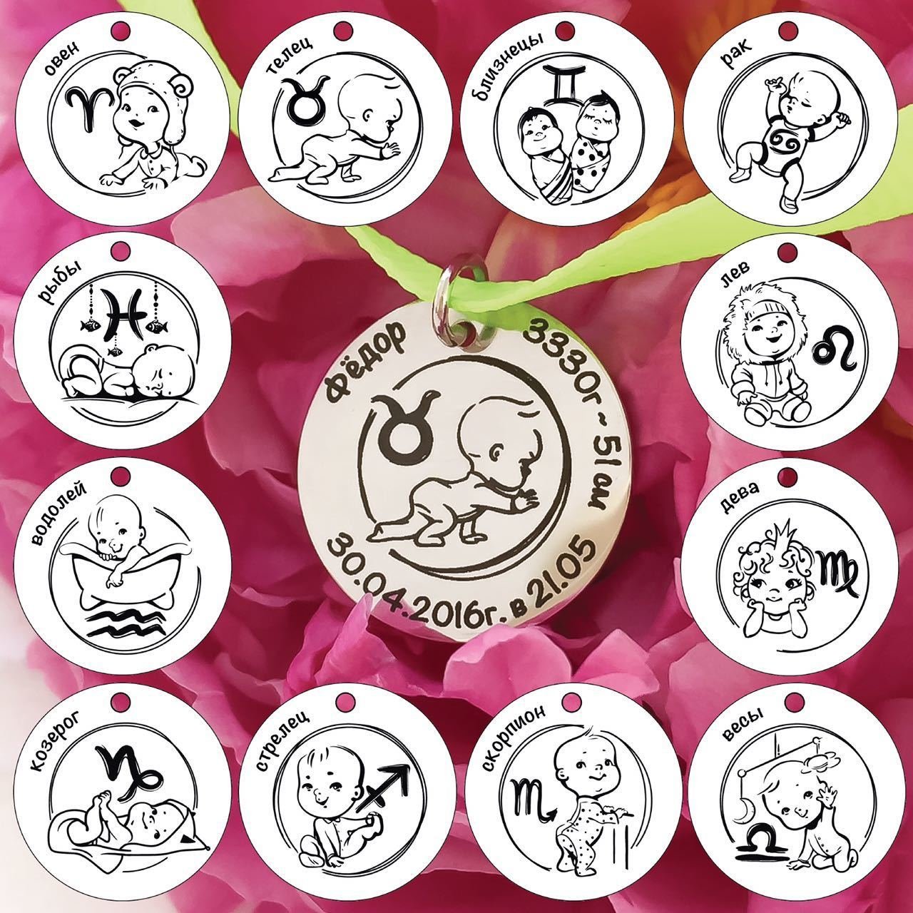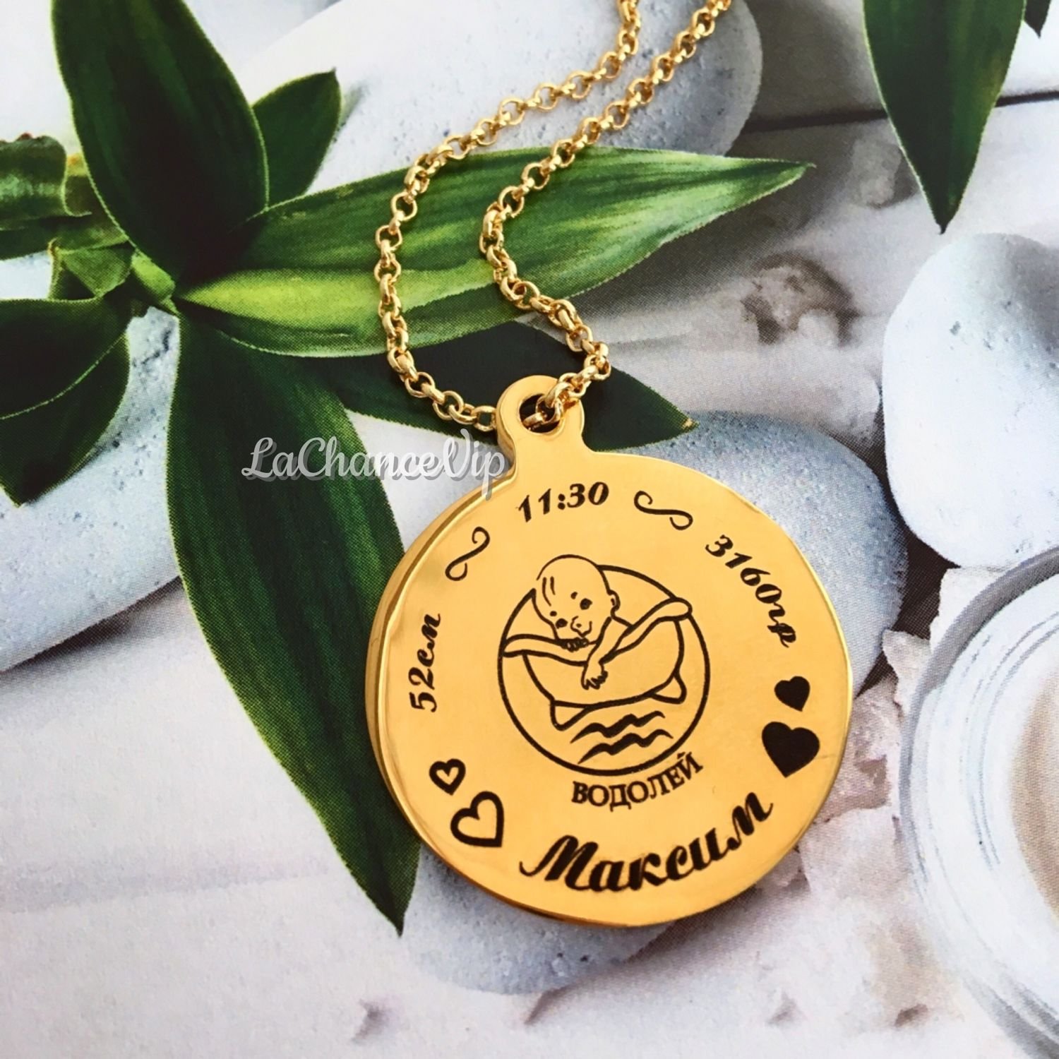 Кулон с гравировкой на рождение ребенка