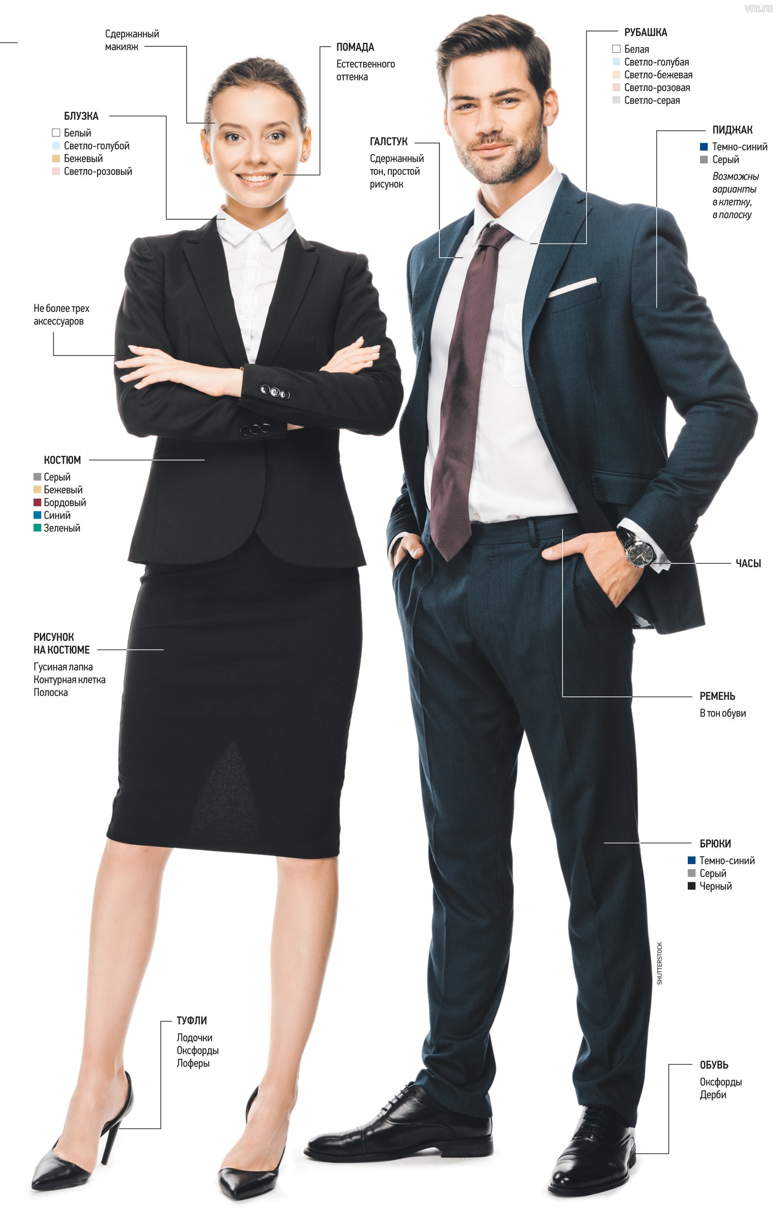 Деловой стиль одежды на белом фоне мужчина и женщина
