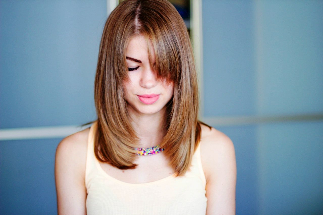 Стрижка каре с челкой на средние волосы для девочек-подростков
