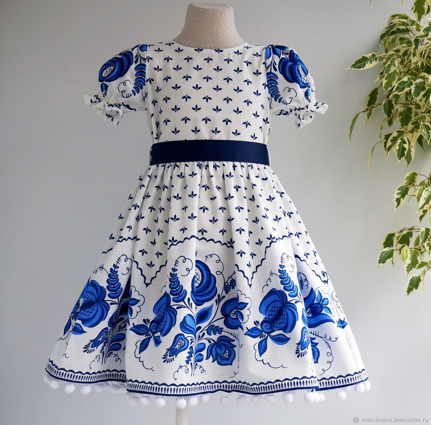 Платье с росписью Гжель