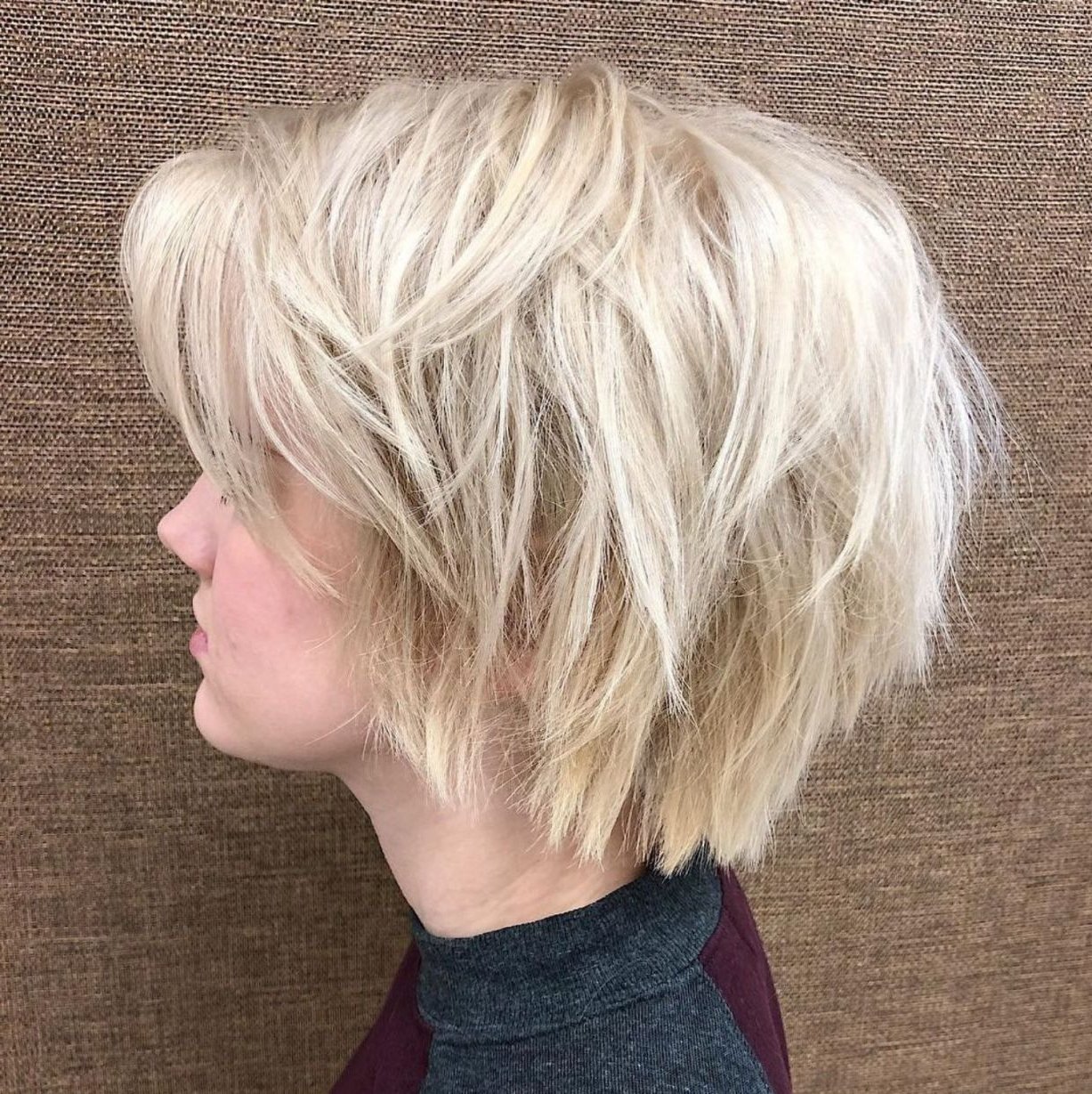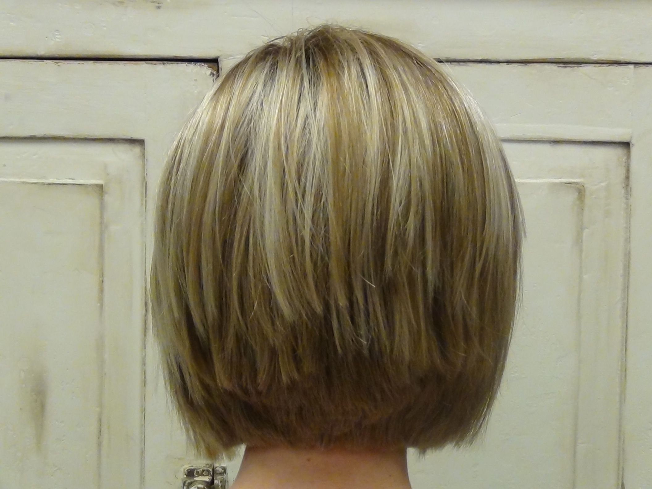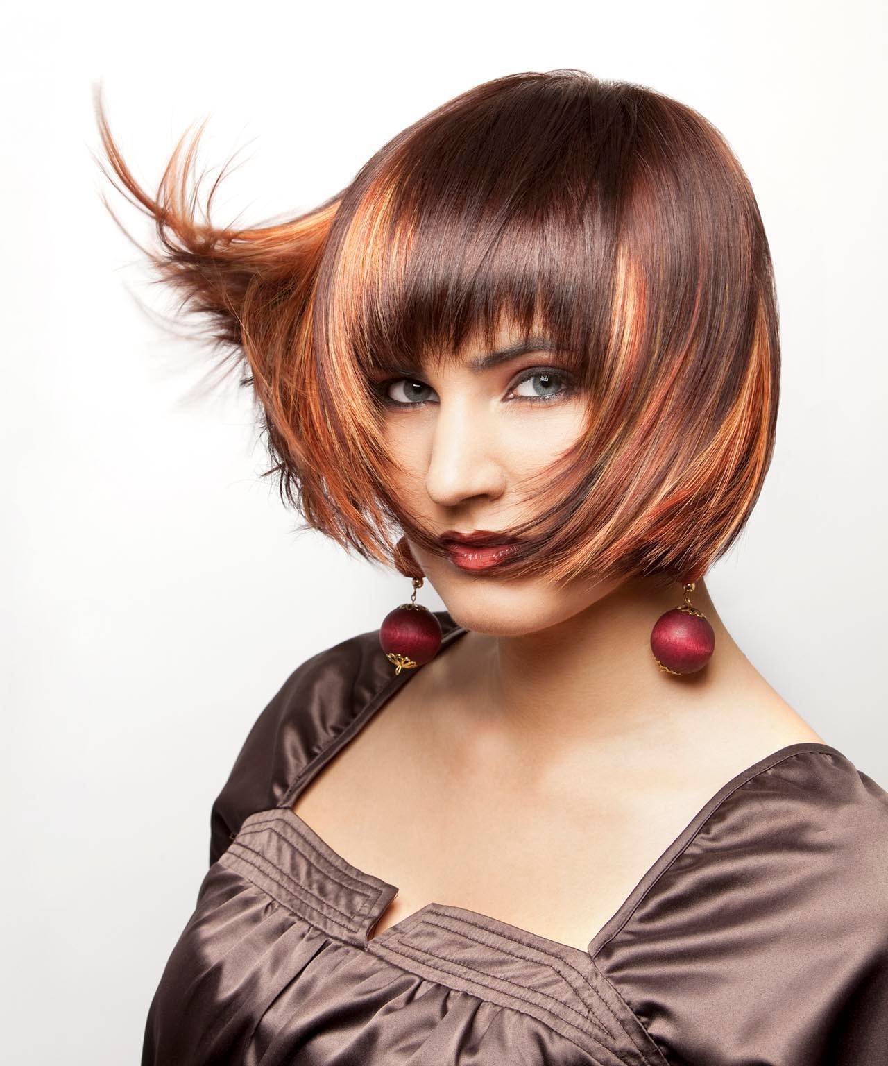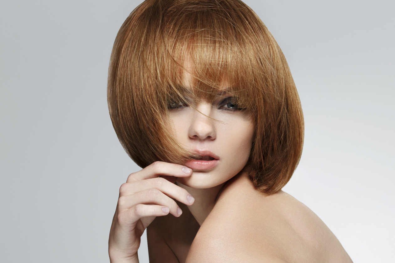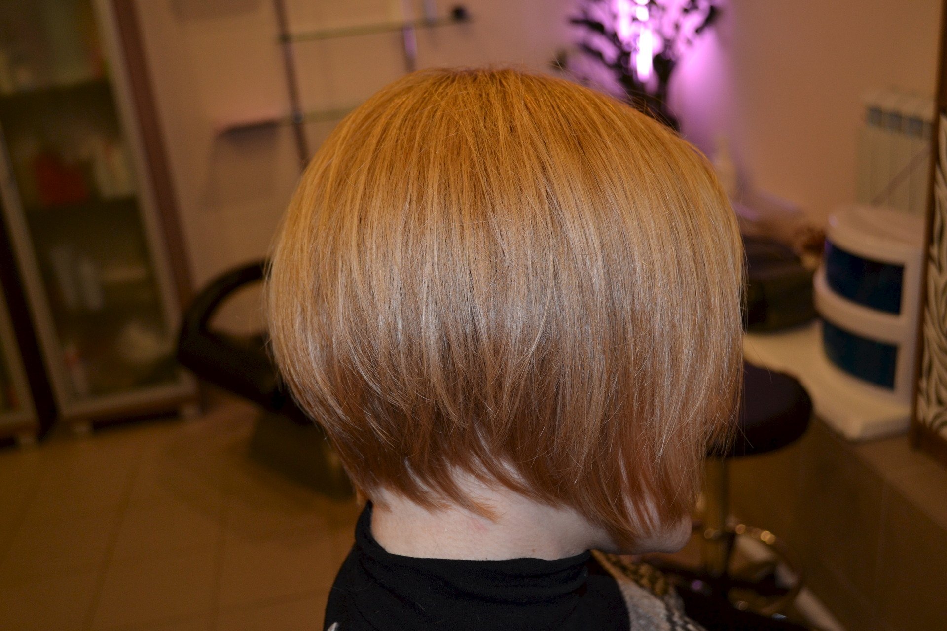 Удлиненное градуированное каре с челкой и объемом на макушке