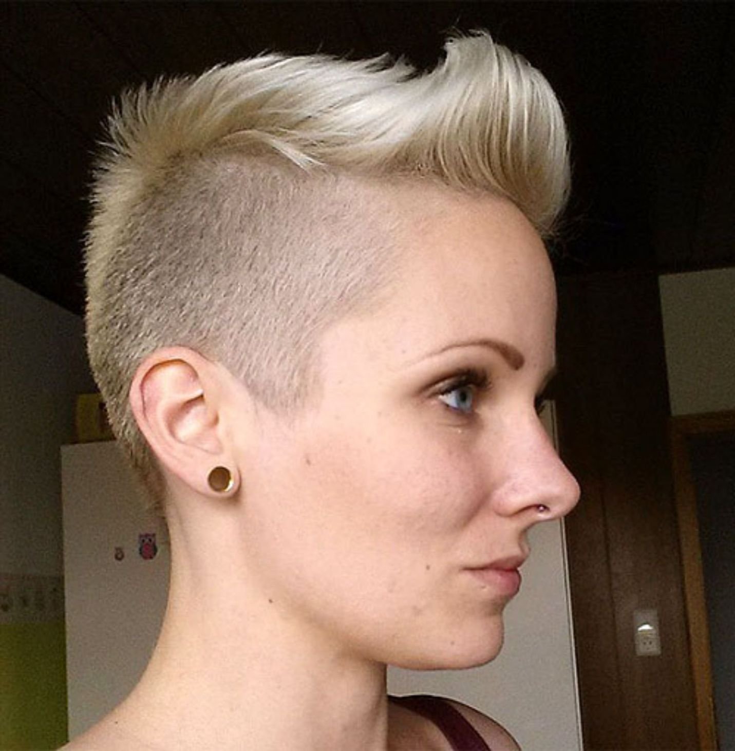 Женская прическа с выбритым лбом