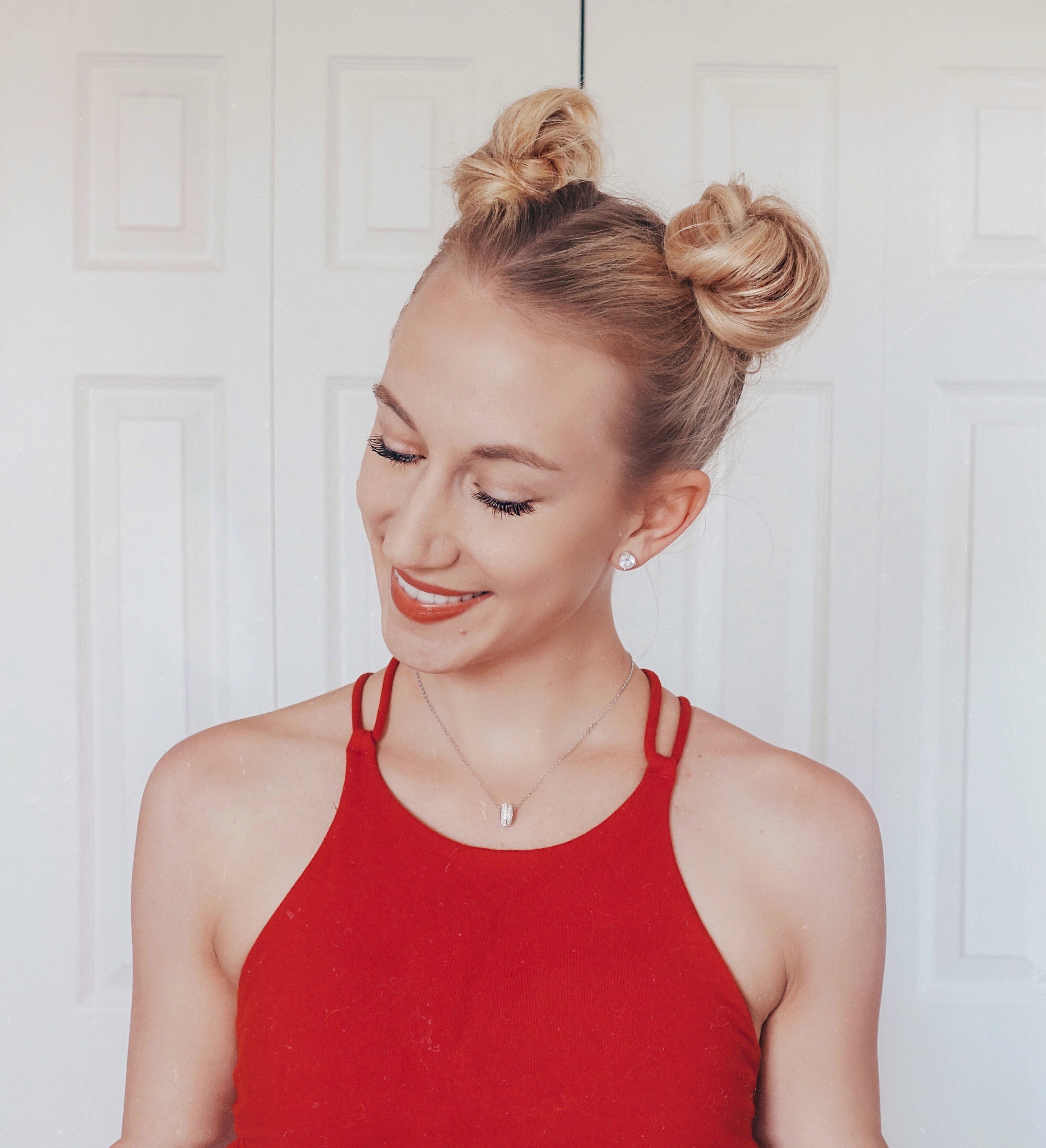 Прическа две шишки и распущенные
