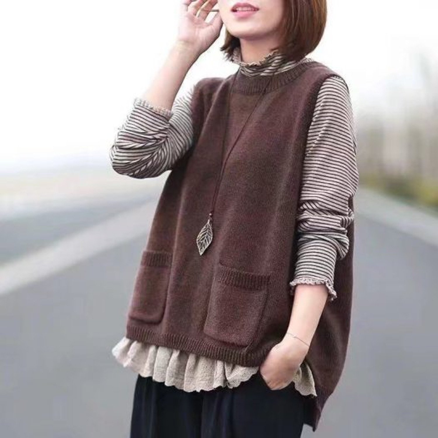 Вязаный жилет в стиле бохо