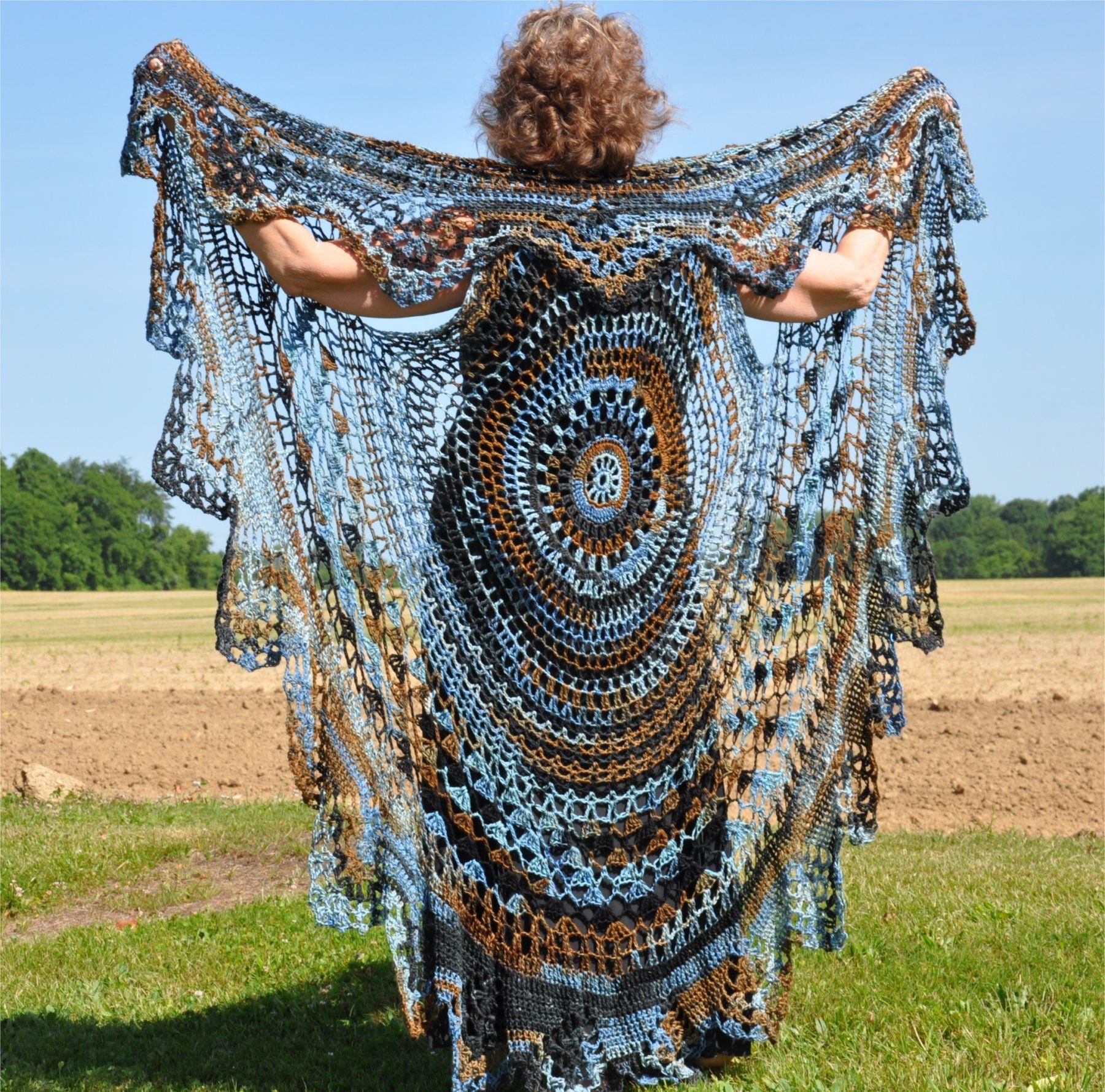 Вязаная шаль в стиле бохо