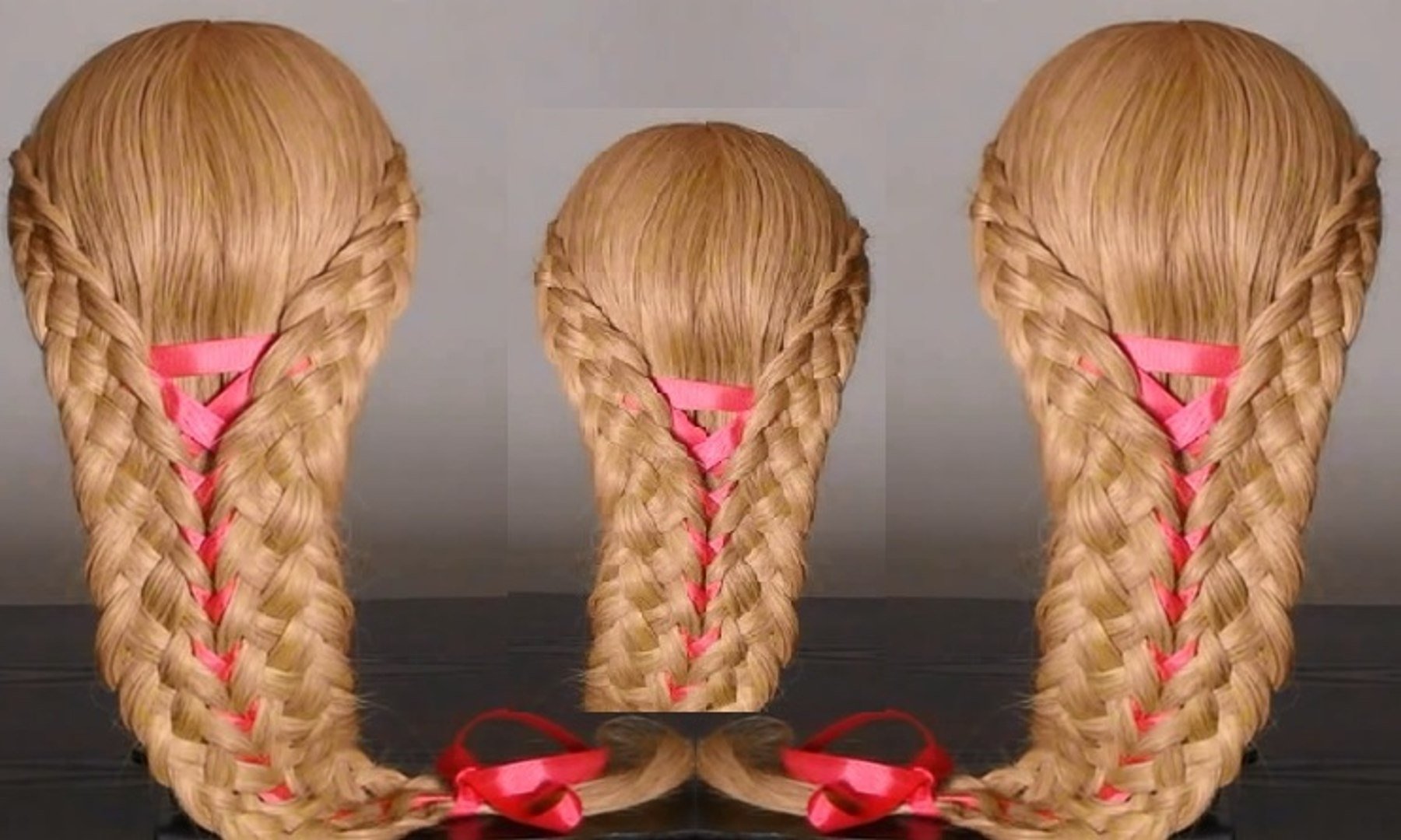 Коса из пяти прядей с лентой