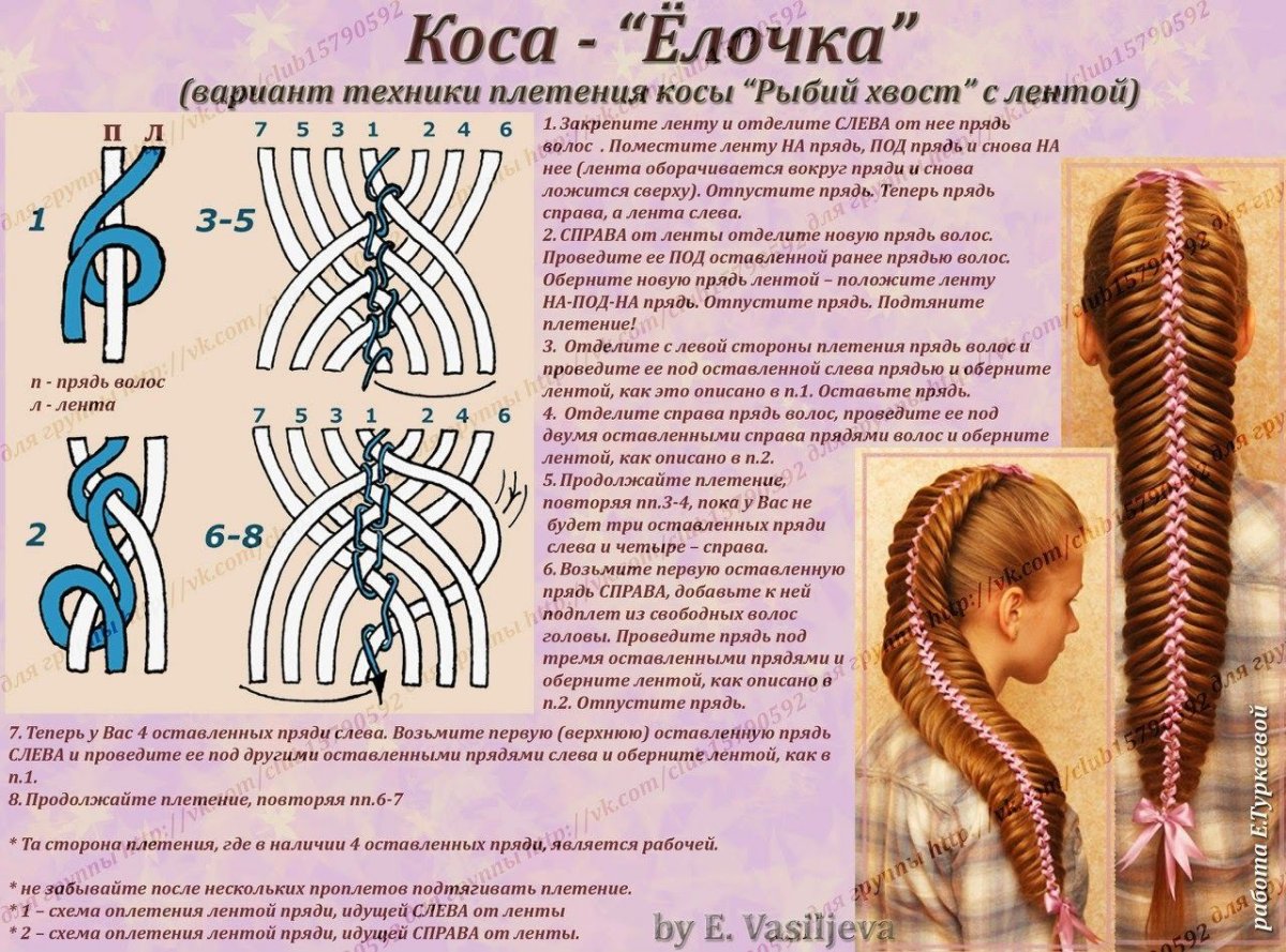 Косы с ленточкой плетение схемы