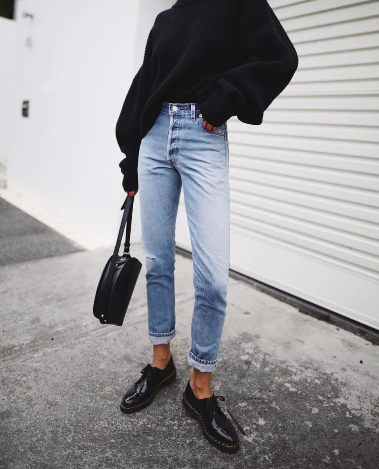 Образ с джинсами и ботинками черными