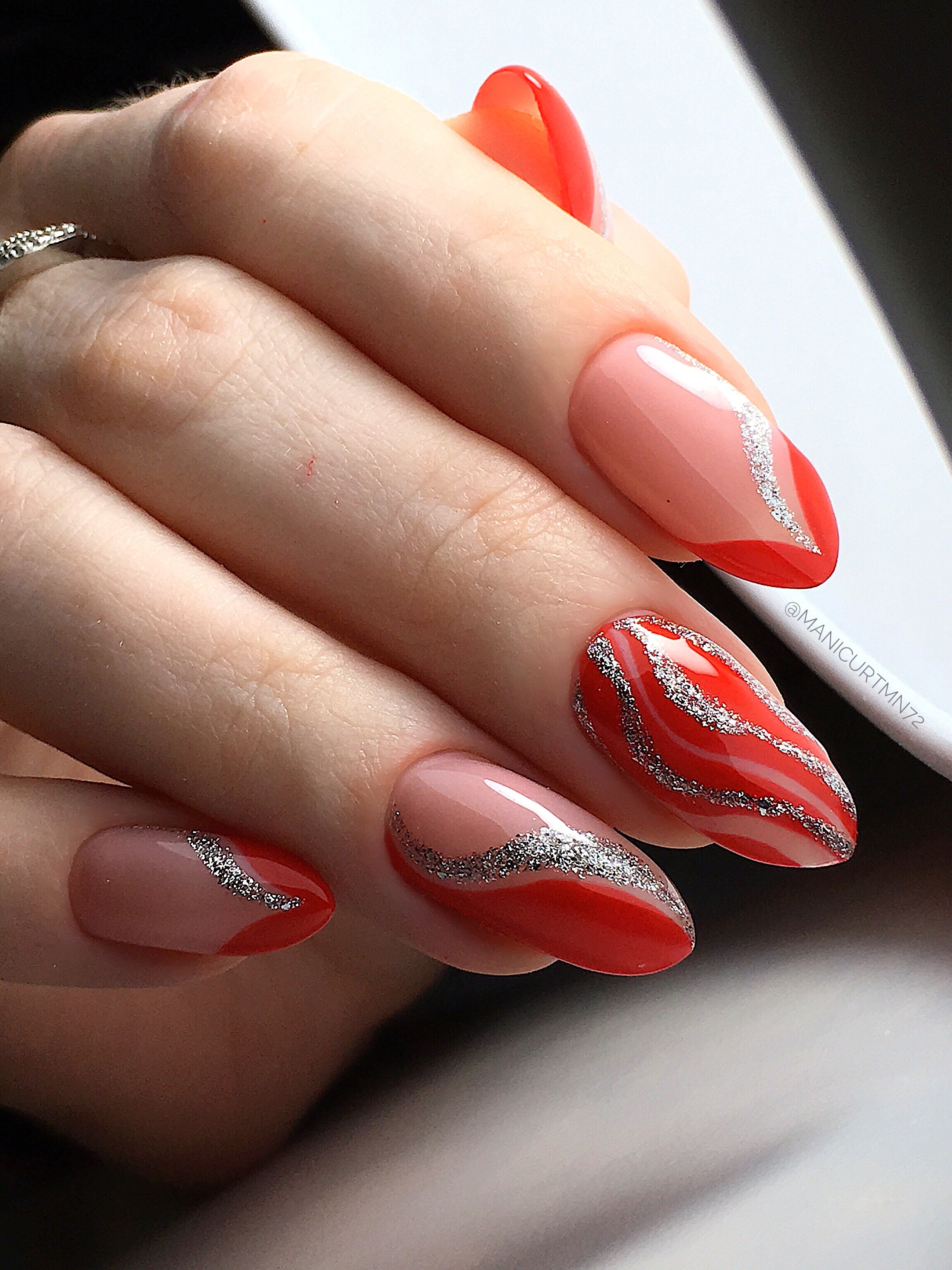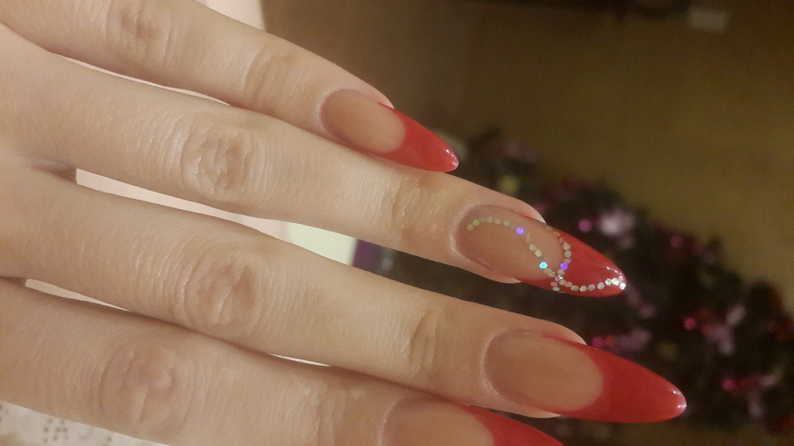 Красный френч с блестками миндаль