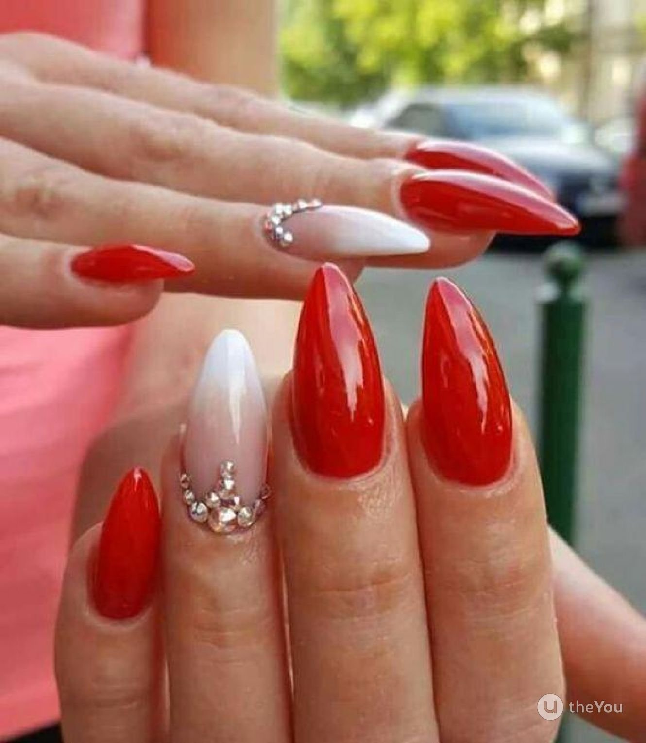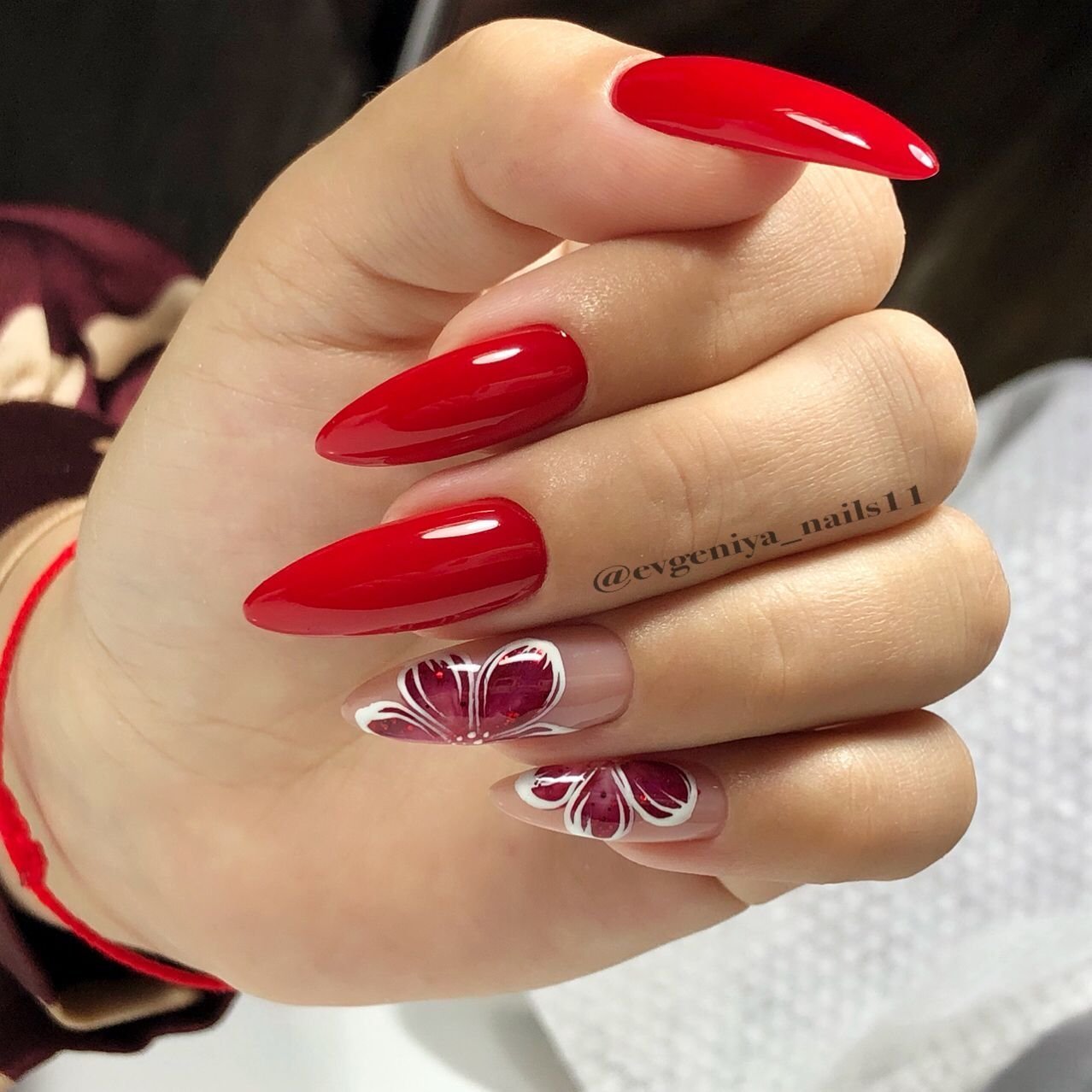 Красный френч на острых ногтях
