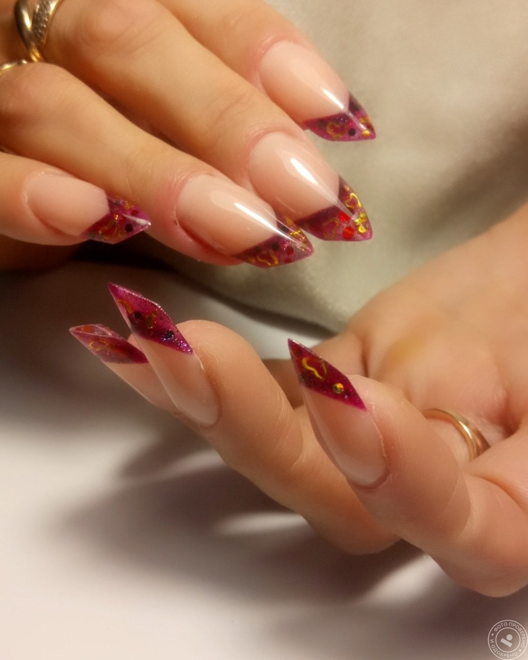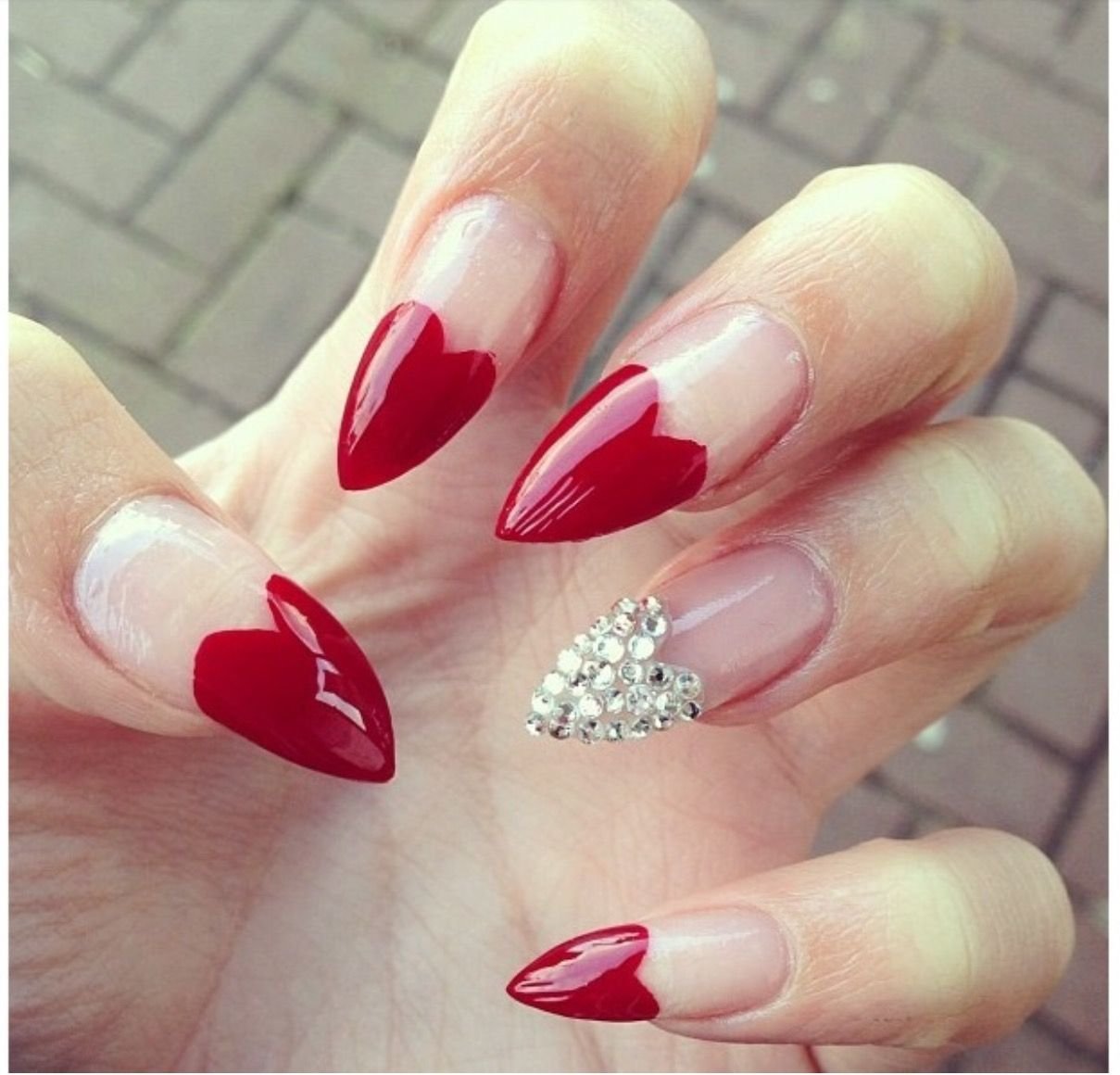 Красные ногти с сердечками