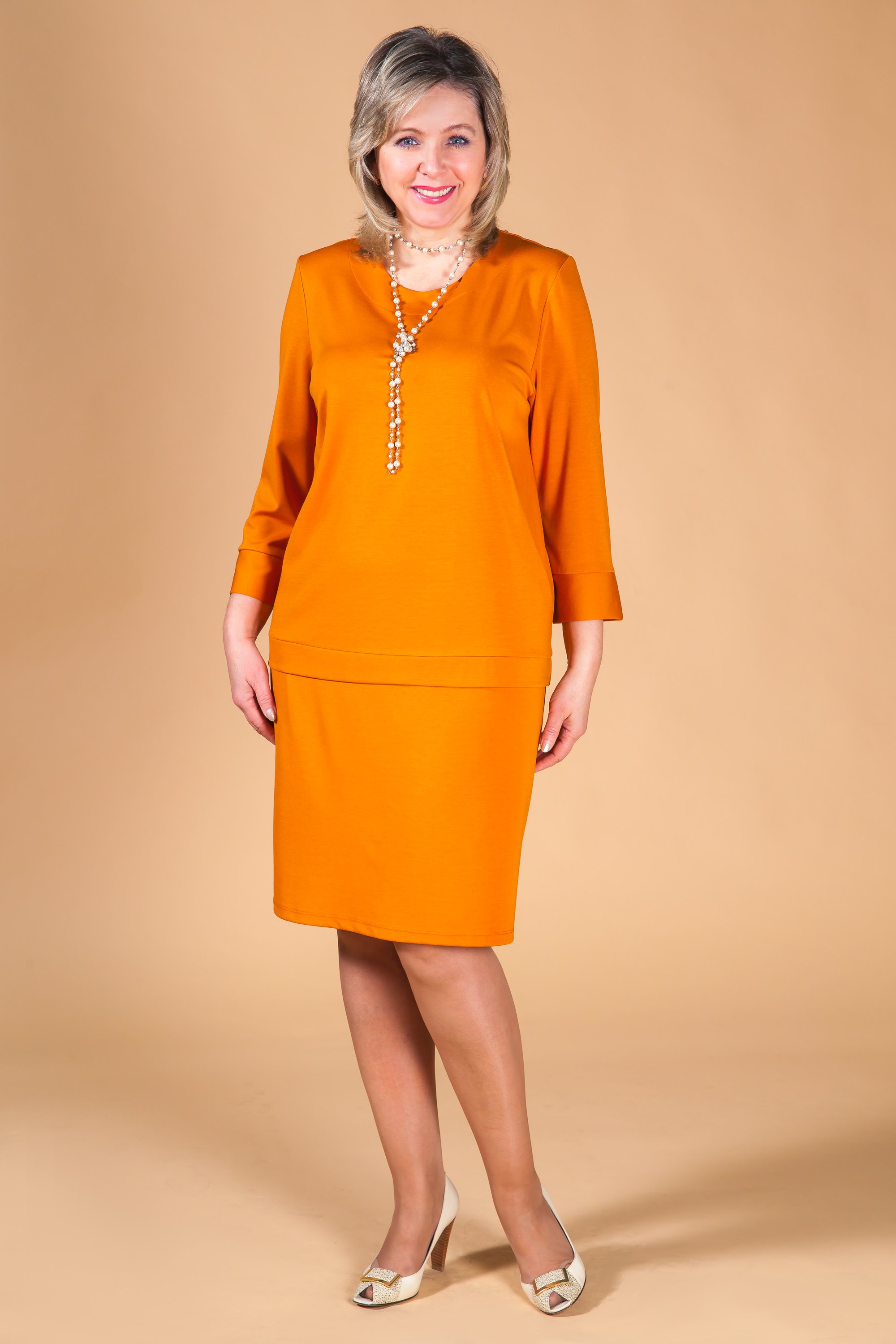 Оранжевое платье для полных