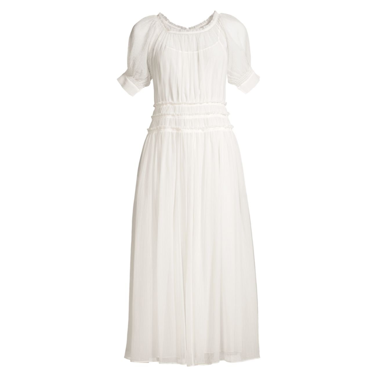 Гофрированное белое платье