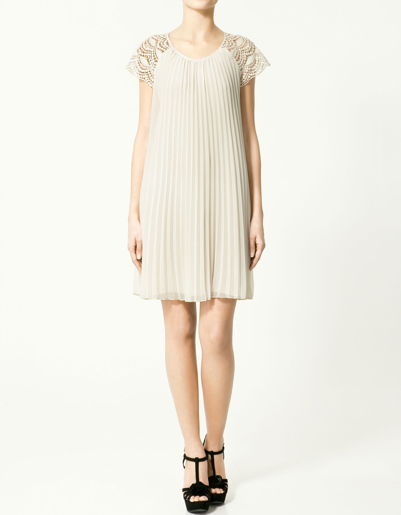 Белое плиссированное платье Зара