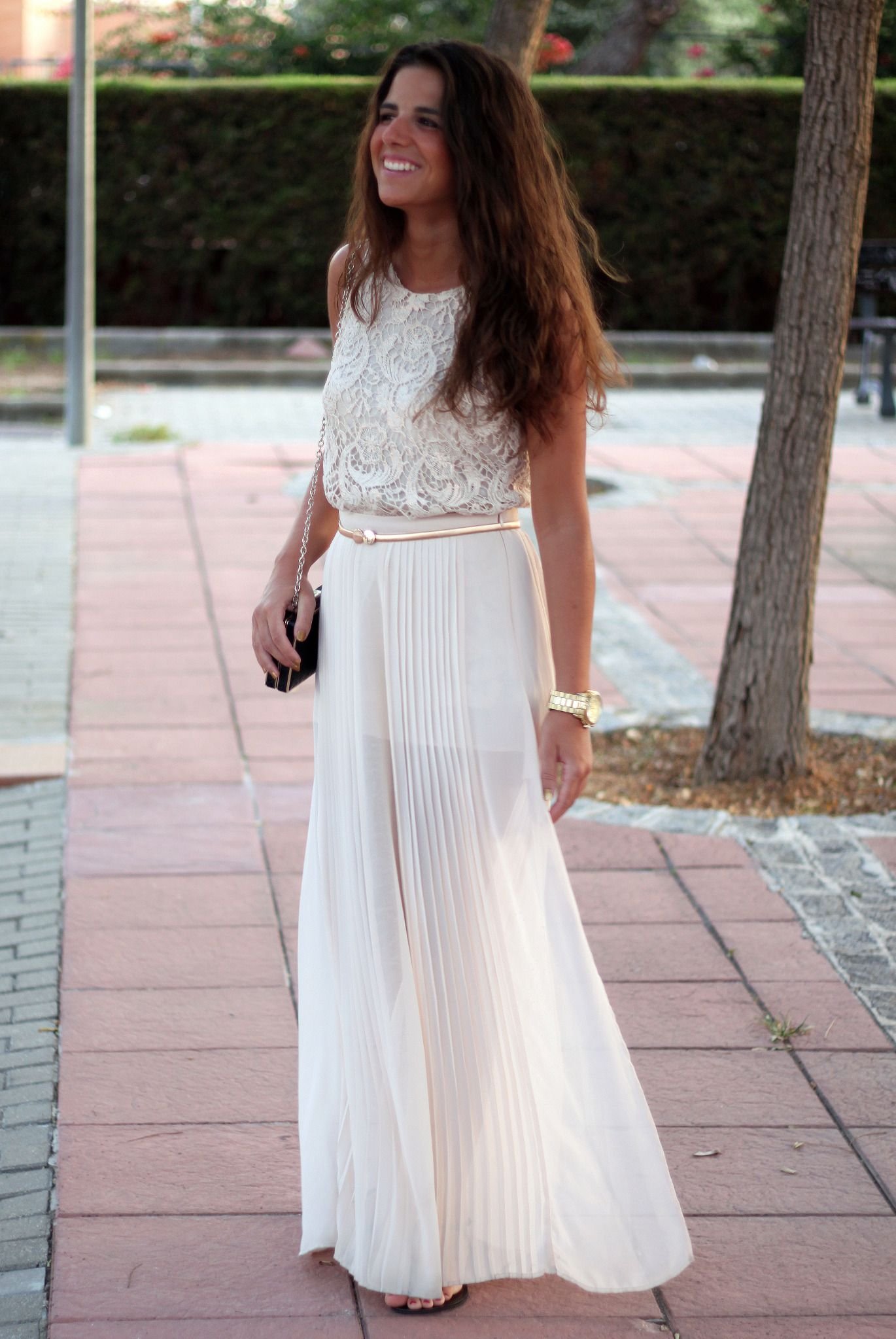 Женщина в белом плиссированном платье