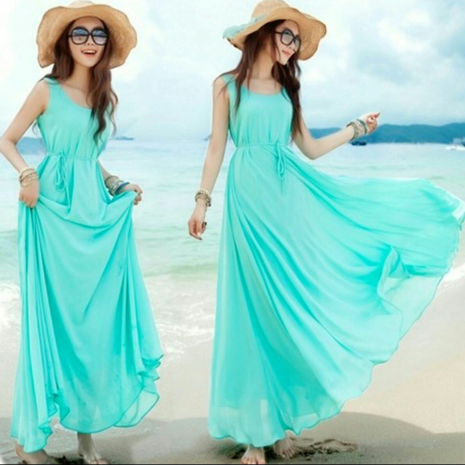 Корейские летние платья длинные