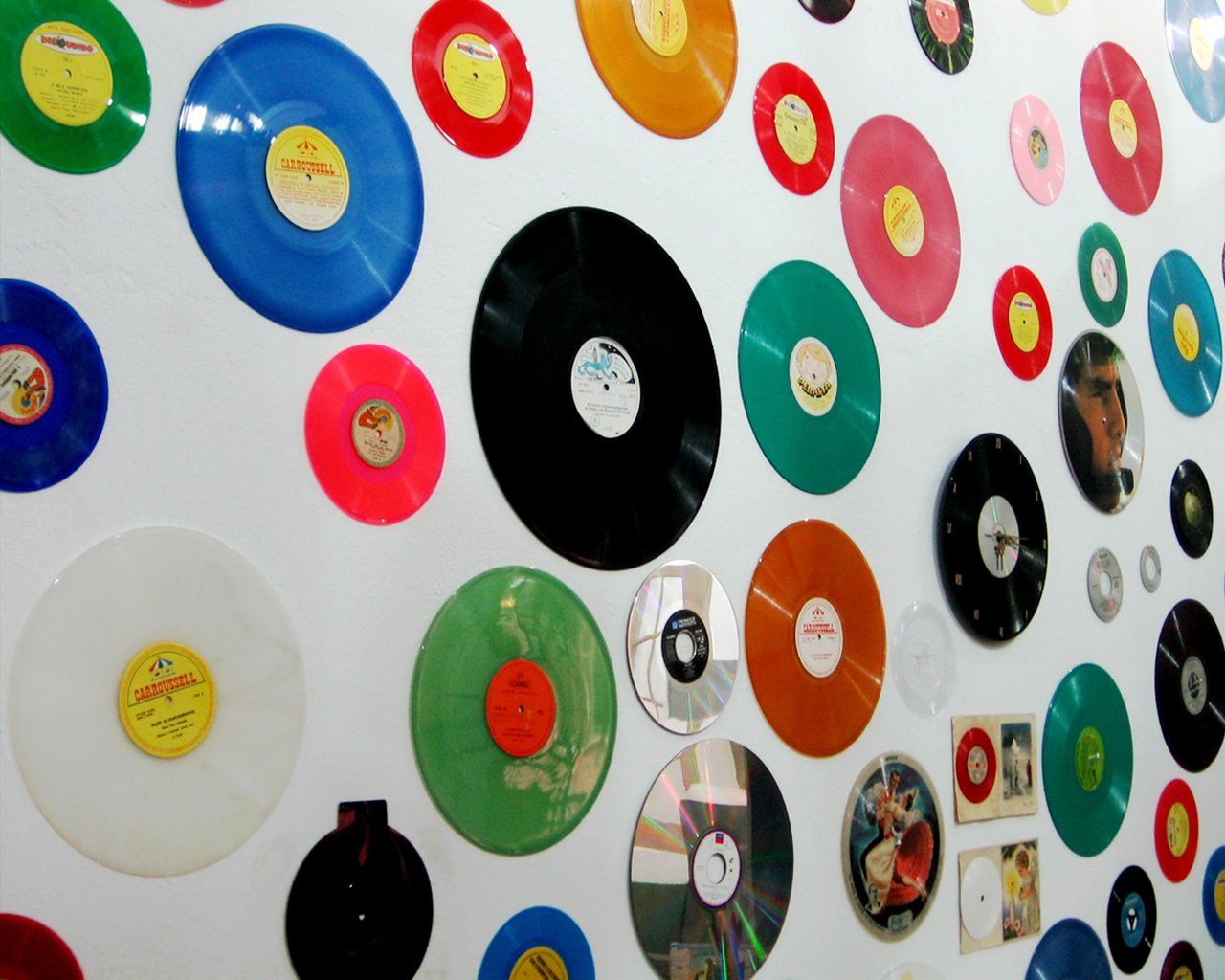 Виниловые пластинки на стене