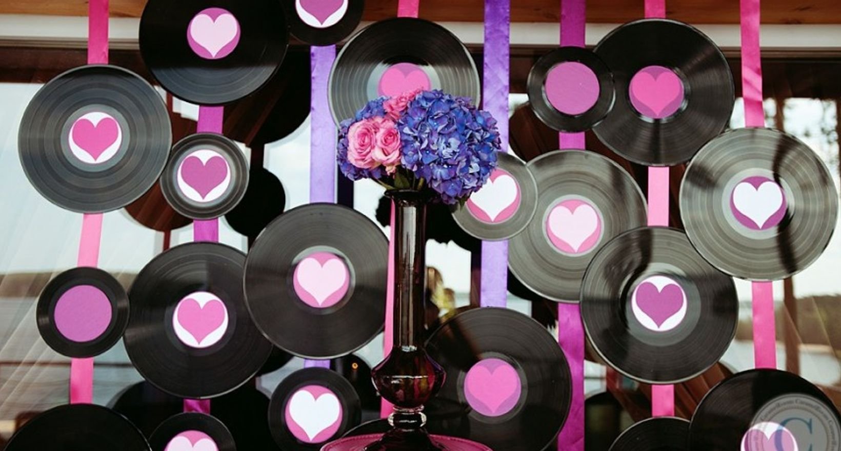 Виниловые пластинки в декоре свадьбы