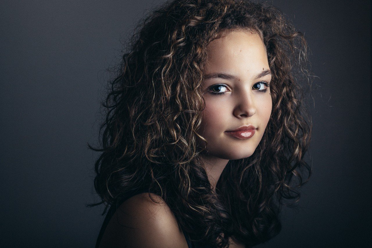 Девушка с кудрявыми волосами в профиль
