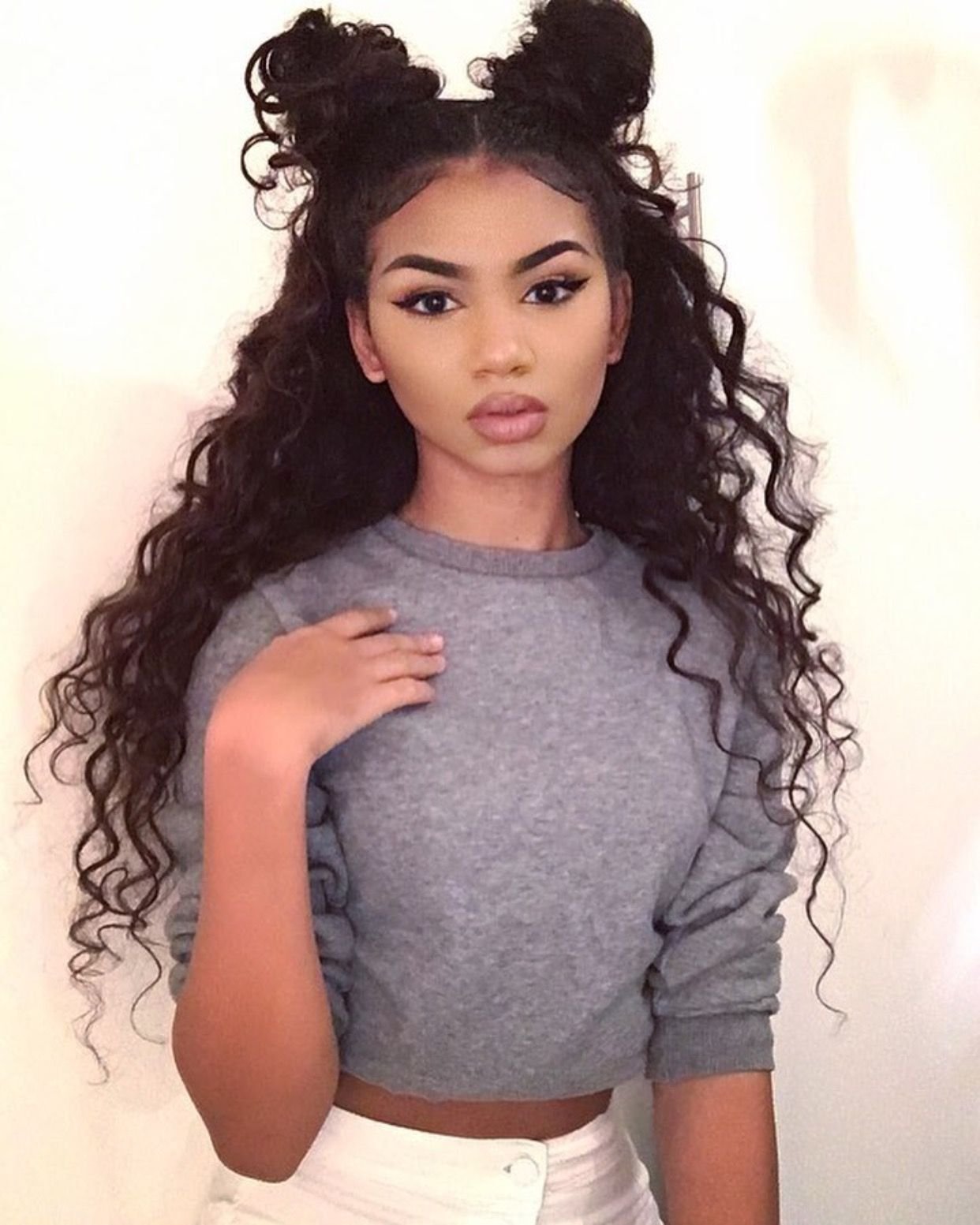 Прическа кудри и два пучка