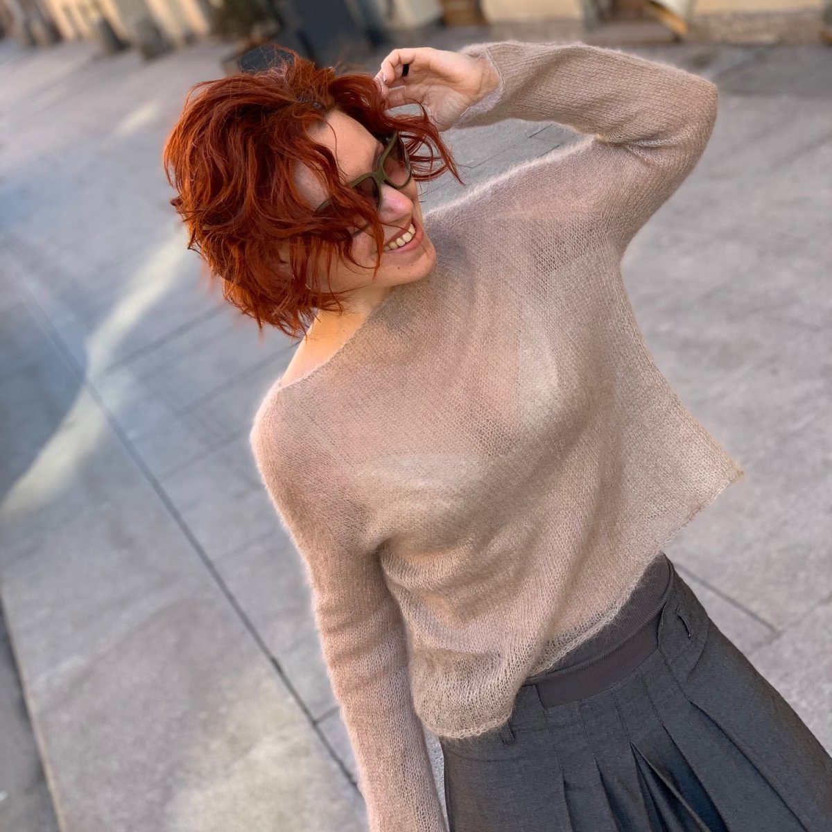 Этот модный образ состоит из рваного свитера и шелковой юбки, создавая уникальное сочетание стилей и текстур. Рваный свитер придает небрежный и несколько разборчивый вид, что добавляет образу некоторую оригинальность и характер. Шелковая юбка, с другой стороны, придает этому наряду легкость и элегантность.