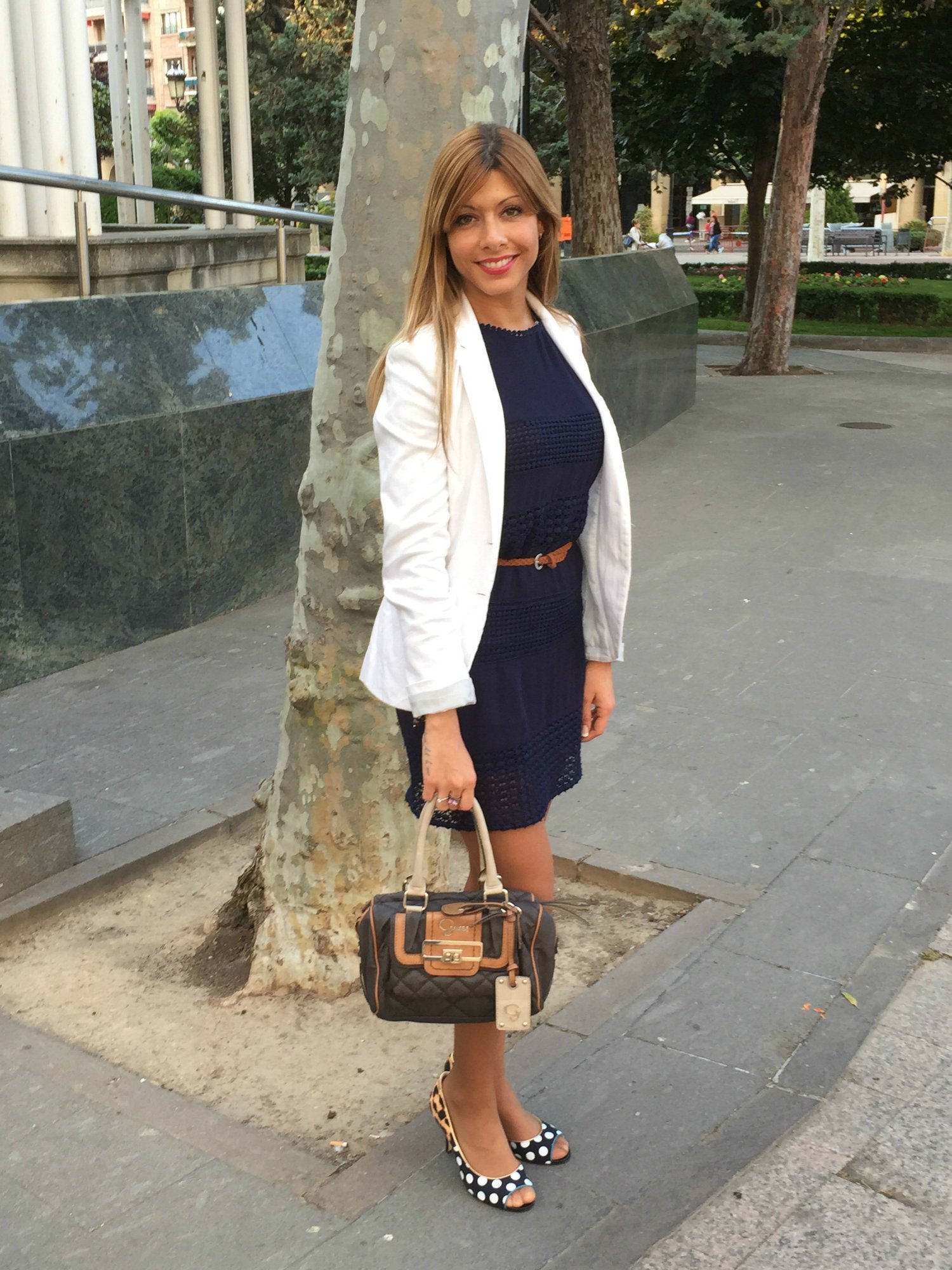 Чёрное платье с белым пиджаком