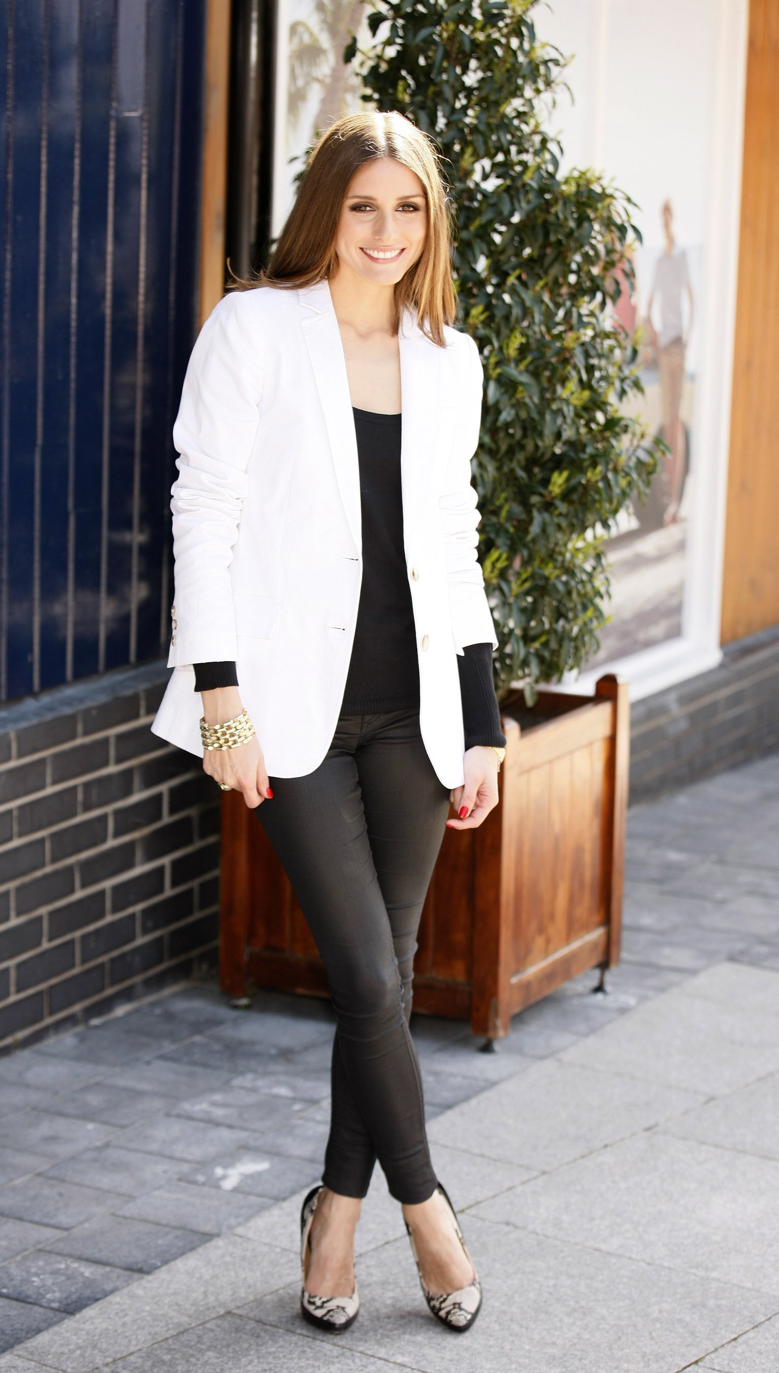 Чёрное платье является классикой стиля и символом изысканности. Оно подчеркивает женственность и придаёт уверенности каждой женщине. Белый пиджак добавляет нотку свежести и легкости, делая образ более ярким и запоминающимся.