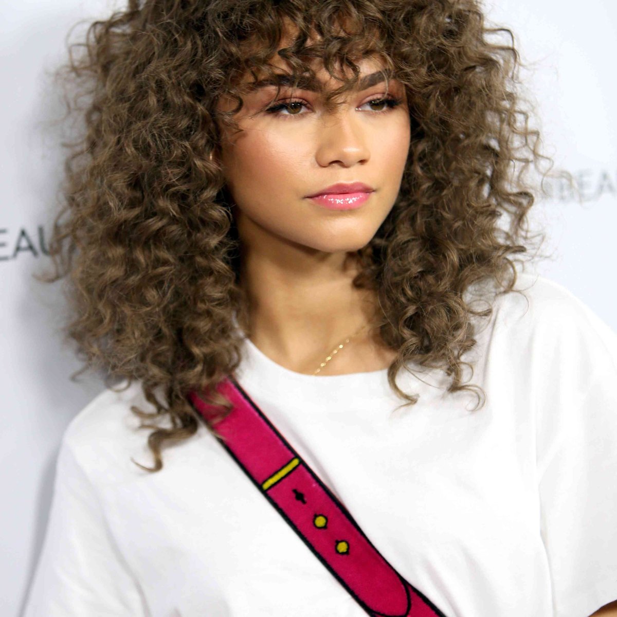 Прямая челка является неотъемлемой частью этой прически, добавляя элегантности и акцентируя внимание на глазах. Она придаёт лицу четкость и определенность, создавая гармонию с объемными афро кудрями.