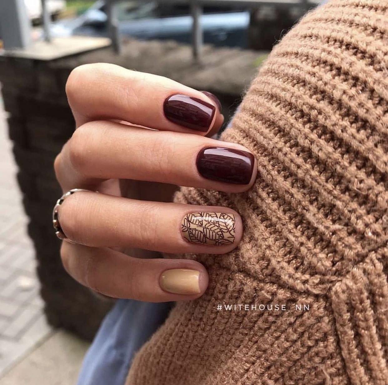 Цвет маникюра к коричневой одежде