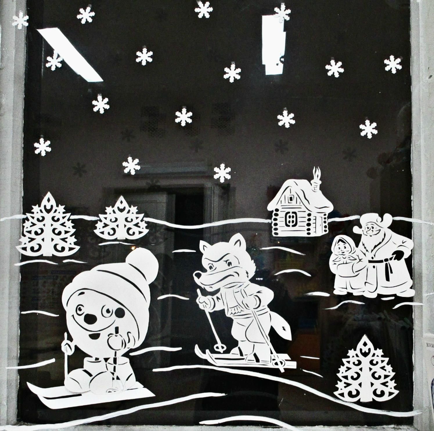 ![Украшение окон на новый год Простоквашино]()