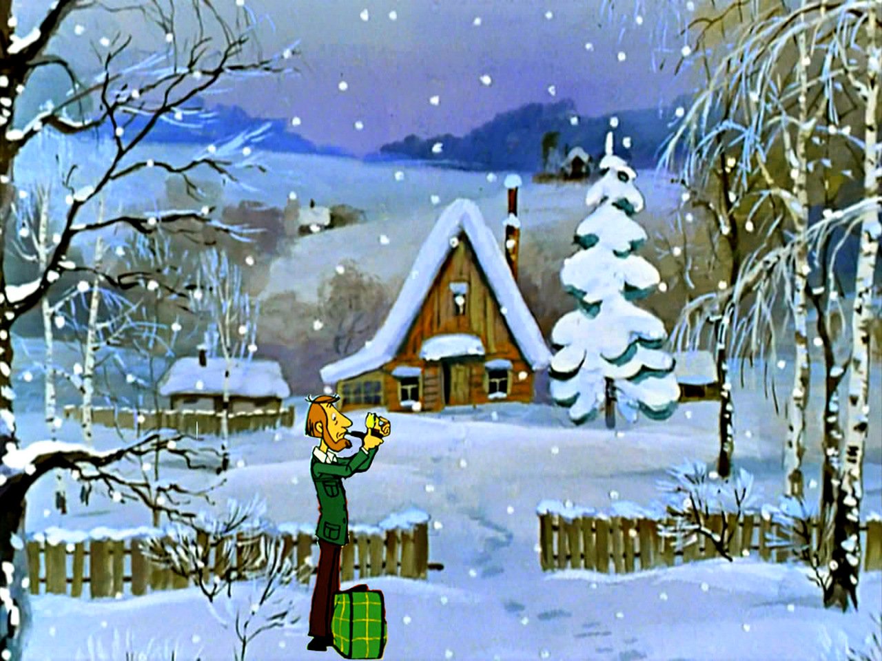 ![Зима в Простоквашино мультфильм 1984]()