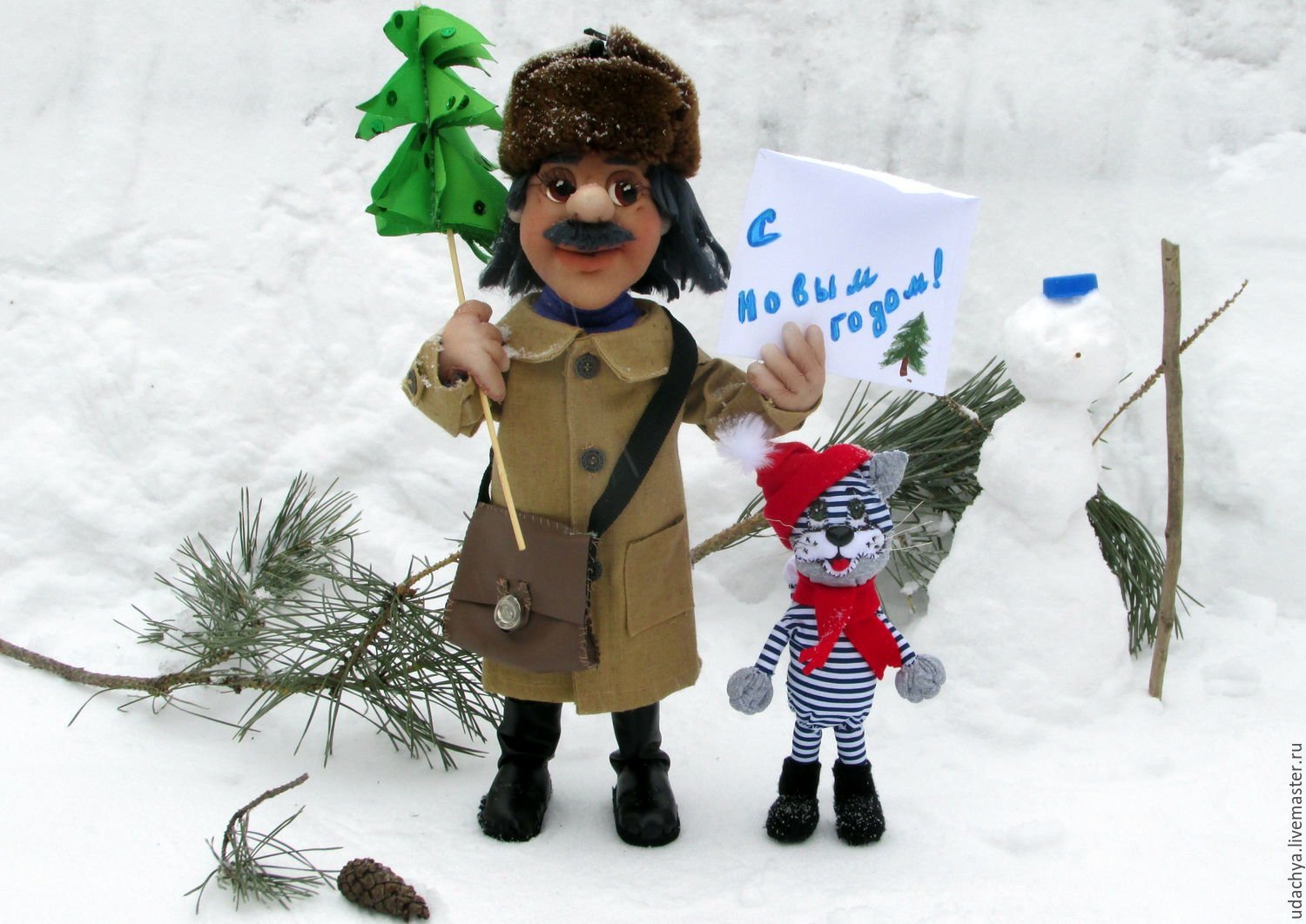 ![Почтальон Печкин в новогоднем Простоквашино]()