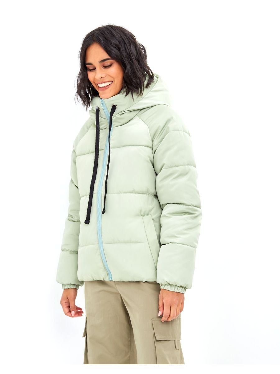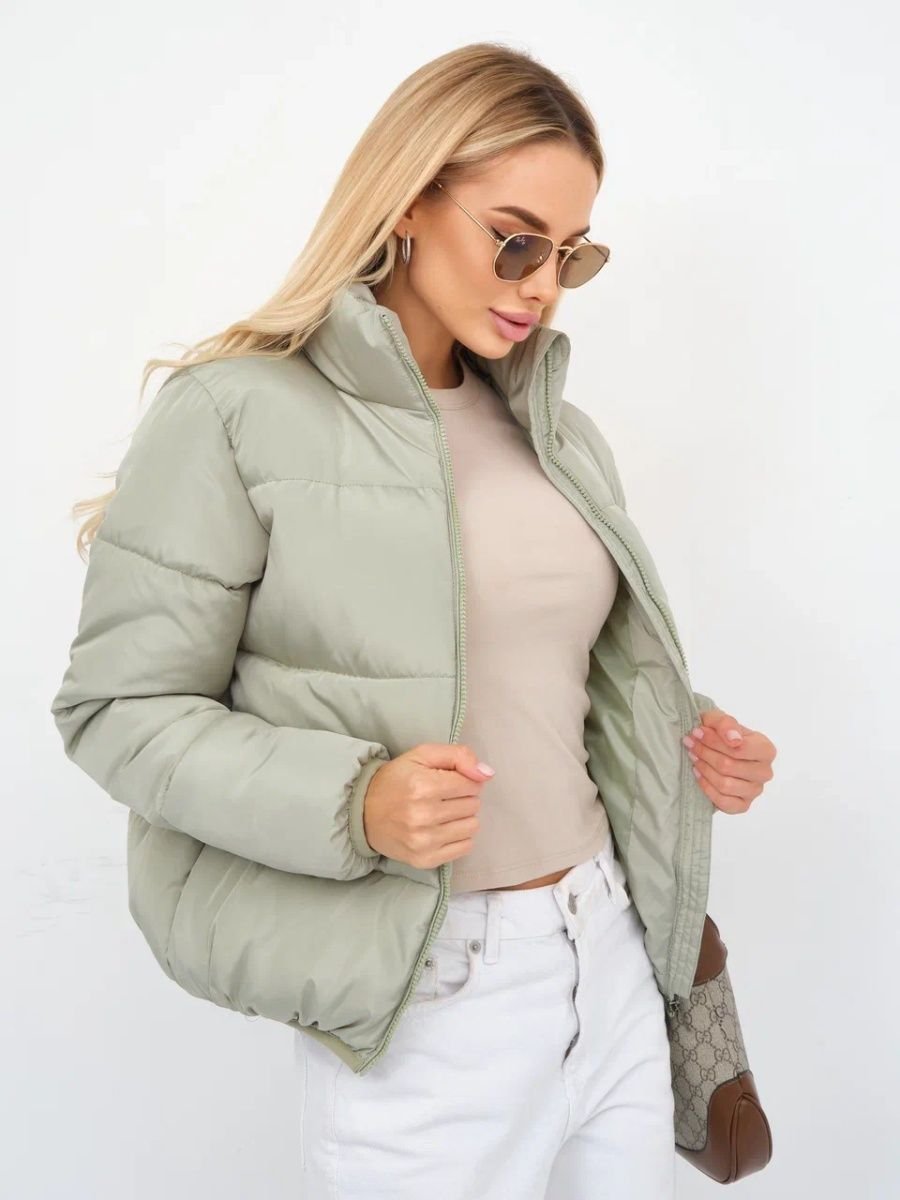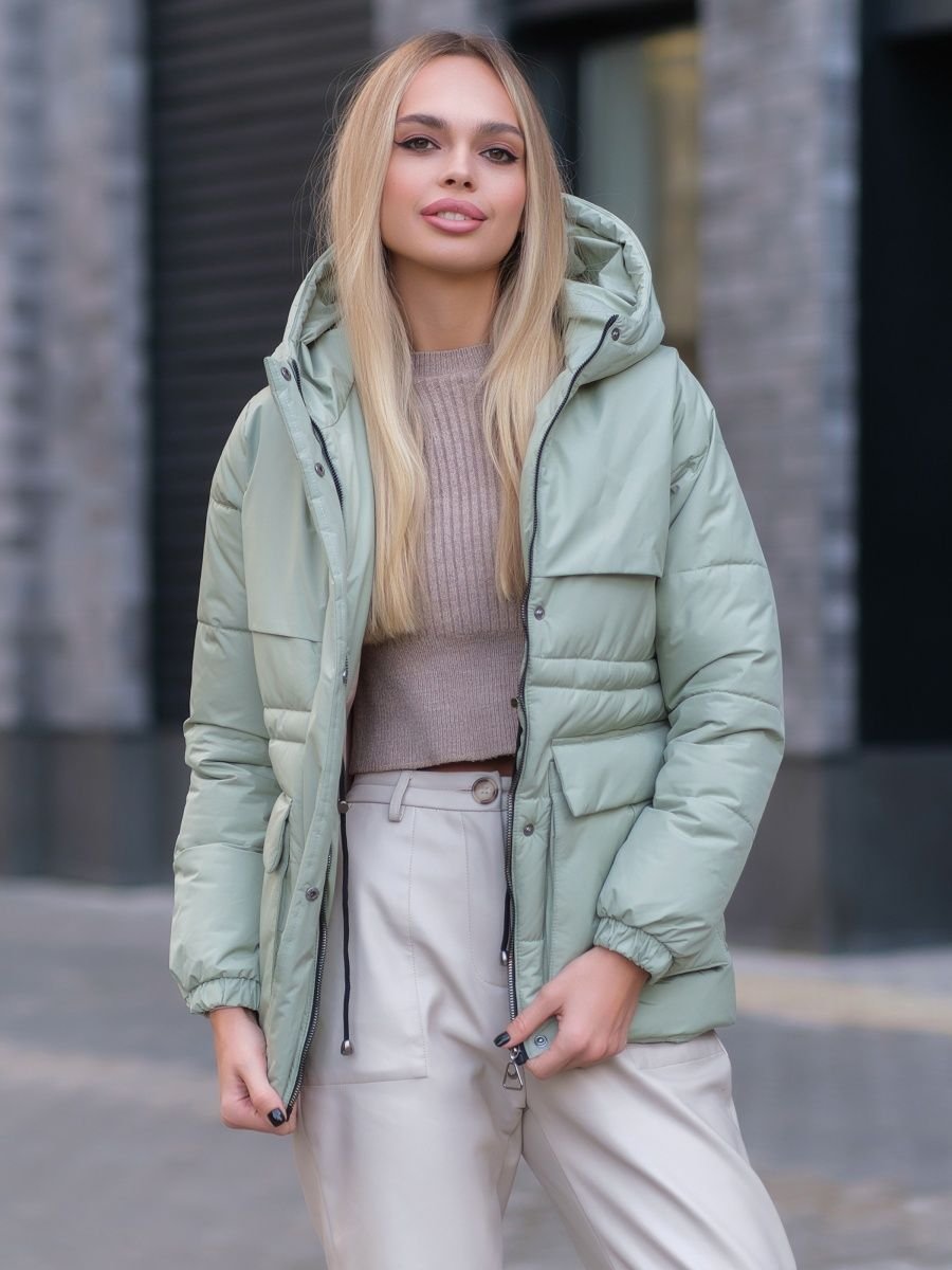 Фисташковый короткий пуховик образы и луки
