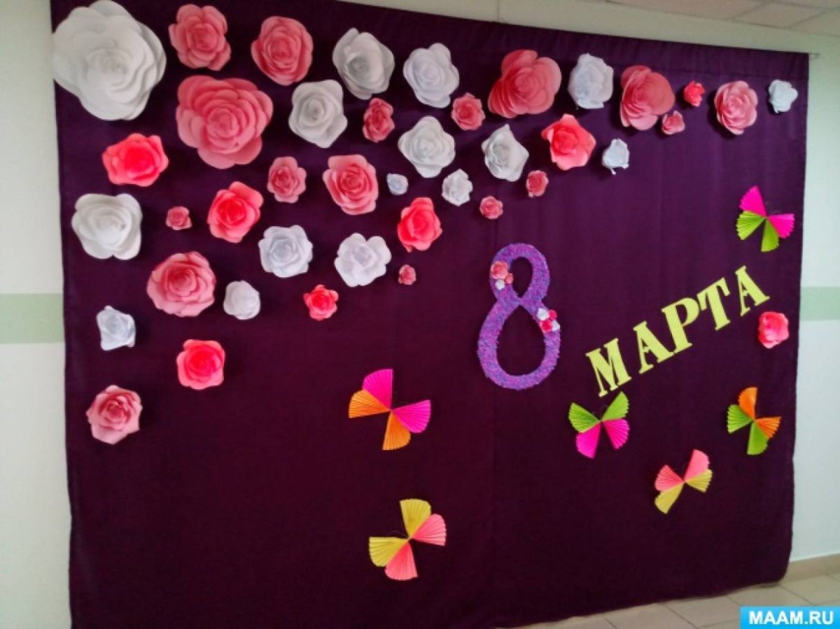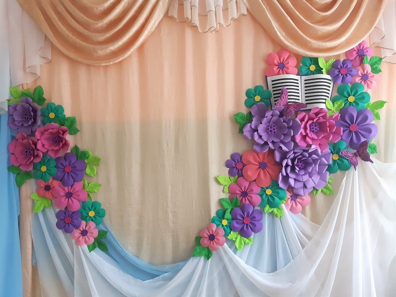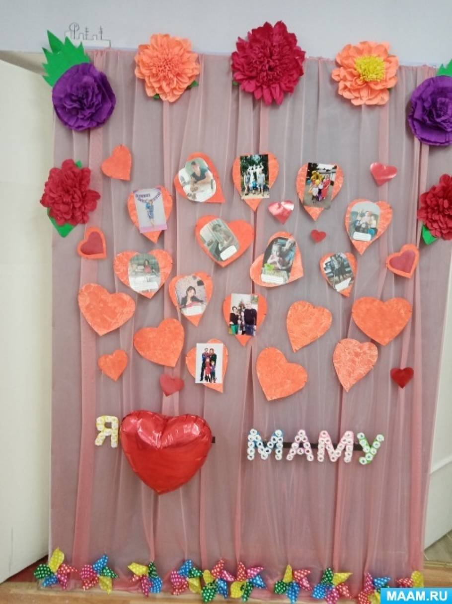Теперь пришло время добавить некоторые декоративные элементы. Можно создать большие цветные цветы из бумаги, которые будут радовать глаз и придавать фотозоне особый шарм. Также можно повесить гирлянду с фотографиями вашей мамы и важными моментами вашей семейной жизни.