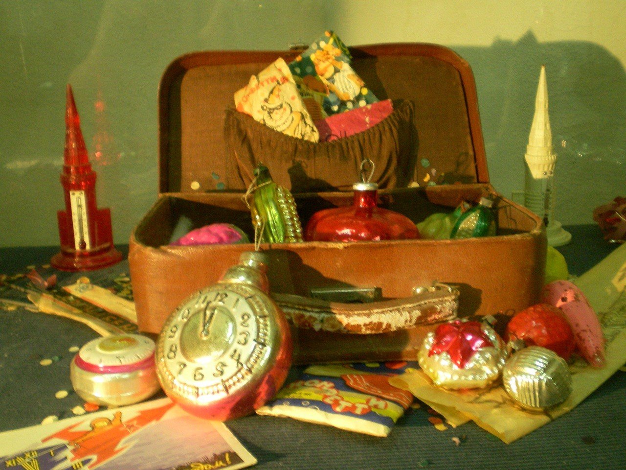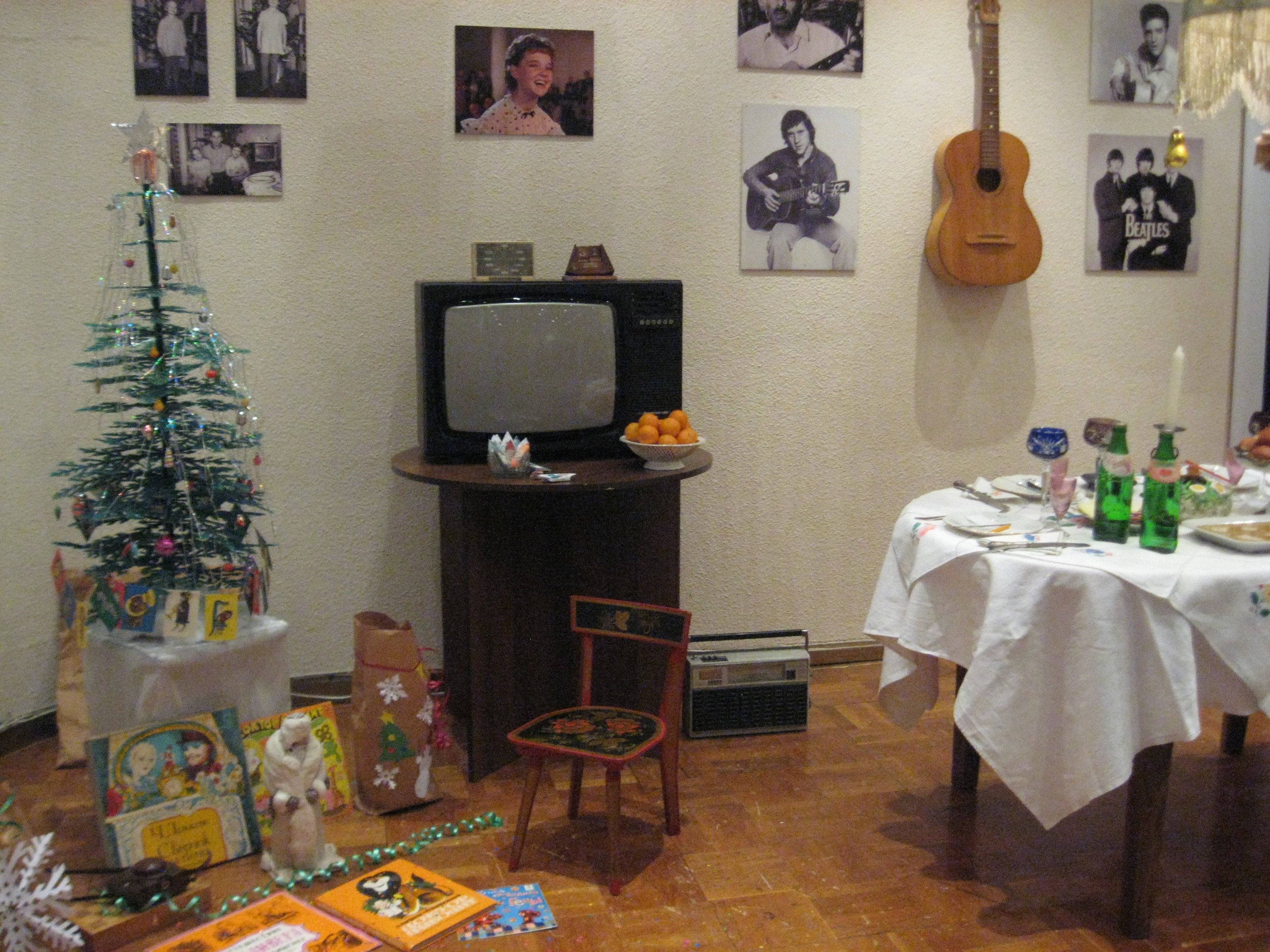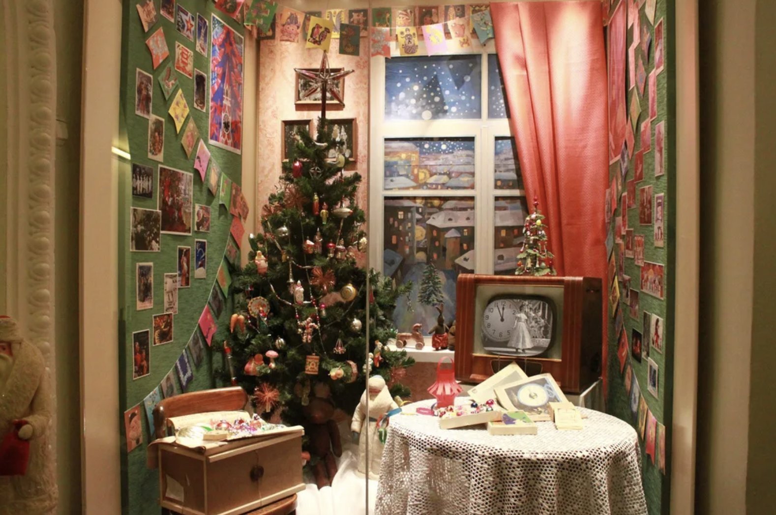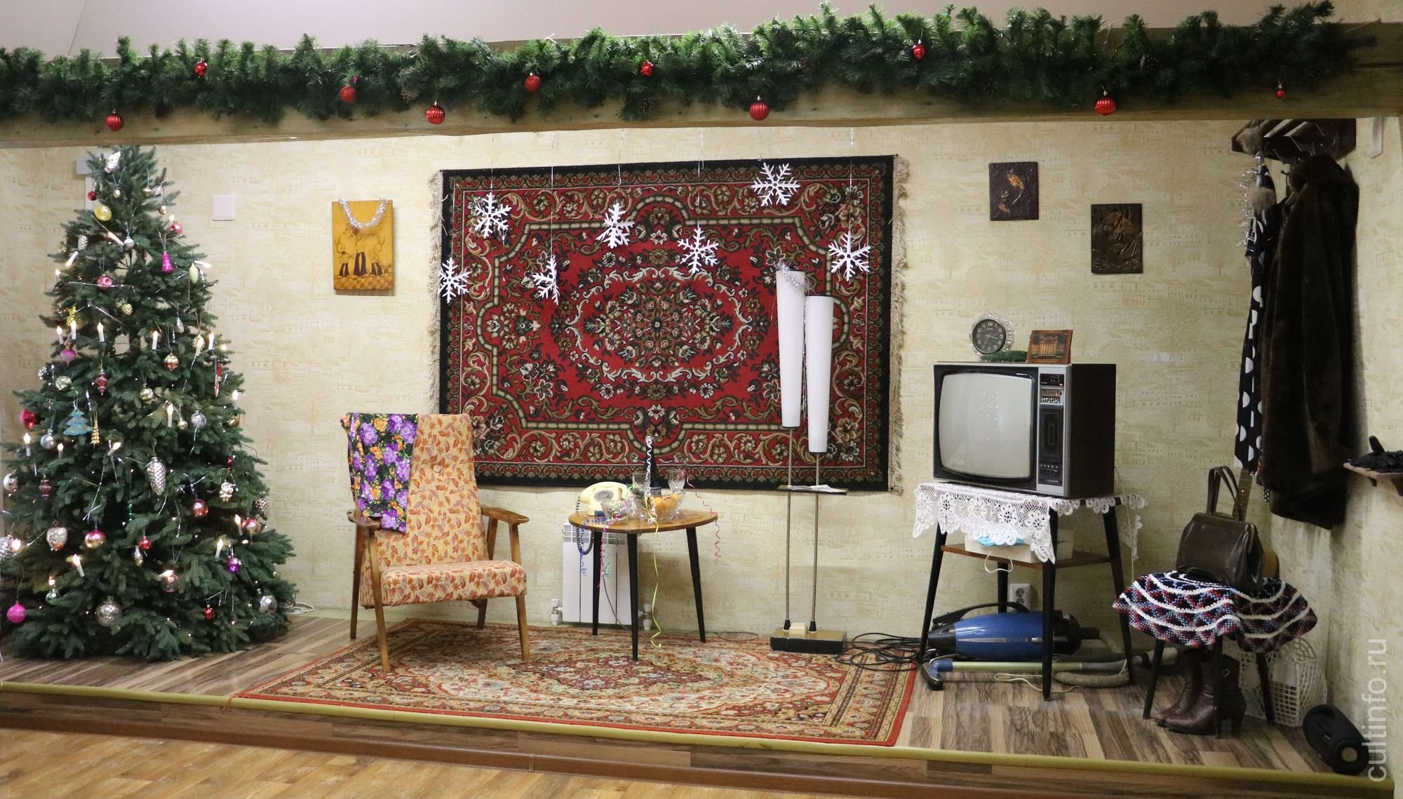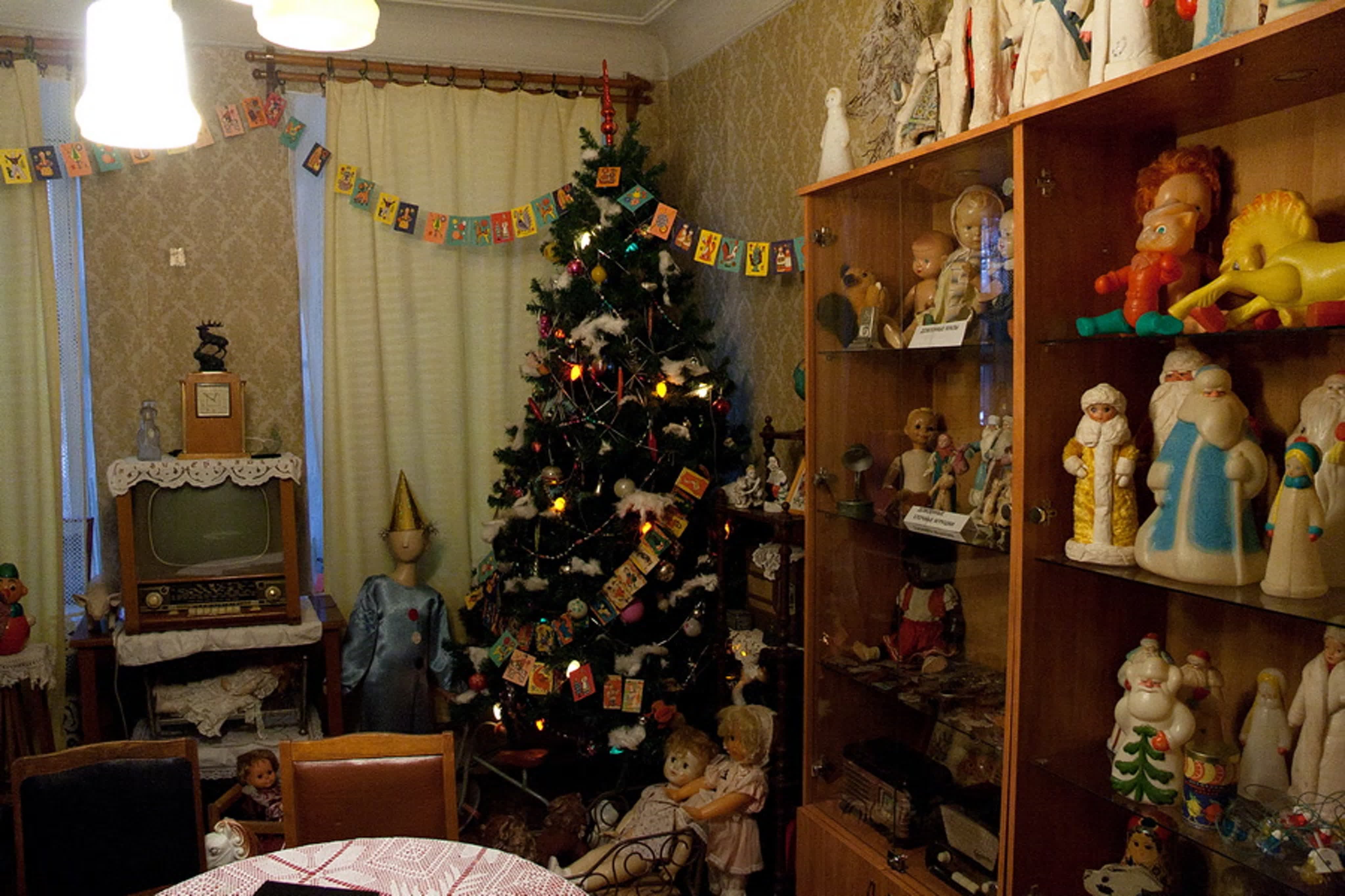 При входе вас встретит огромная новогодняя елка, украшенная яркими шарами, огоньками и хрустальными гирляндами, словно из сказки. Рядом с ней расположены настоящие советские подарочные коробки, наполненные разноцветными конфетами и игрушками. Вы сможете почувствовать аромат мандаринов, который наполнял дома тех лет, и насладиться их сладким вкусом.
