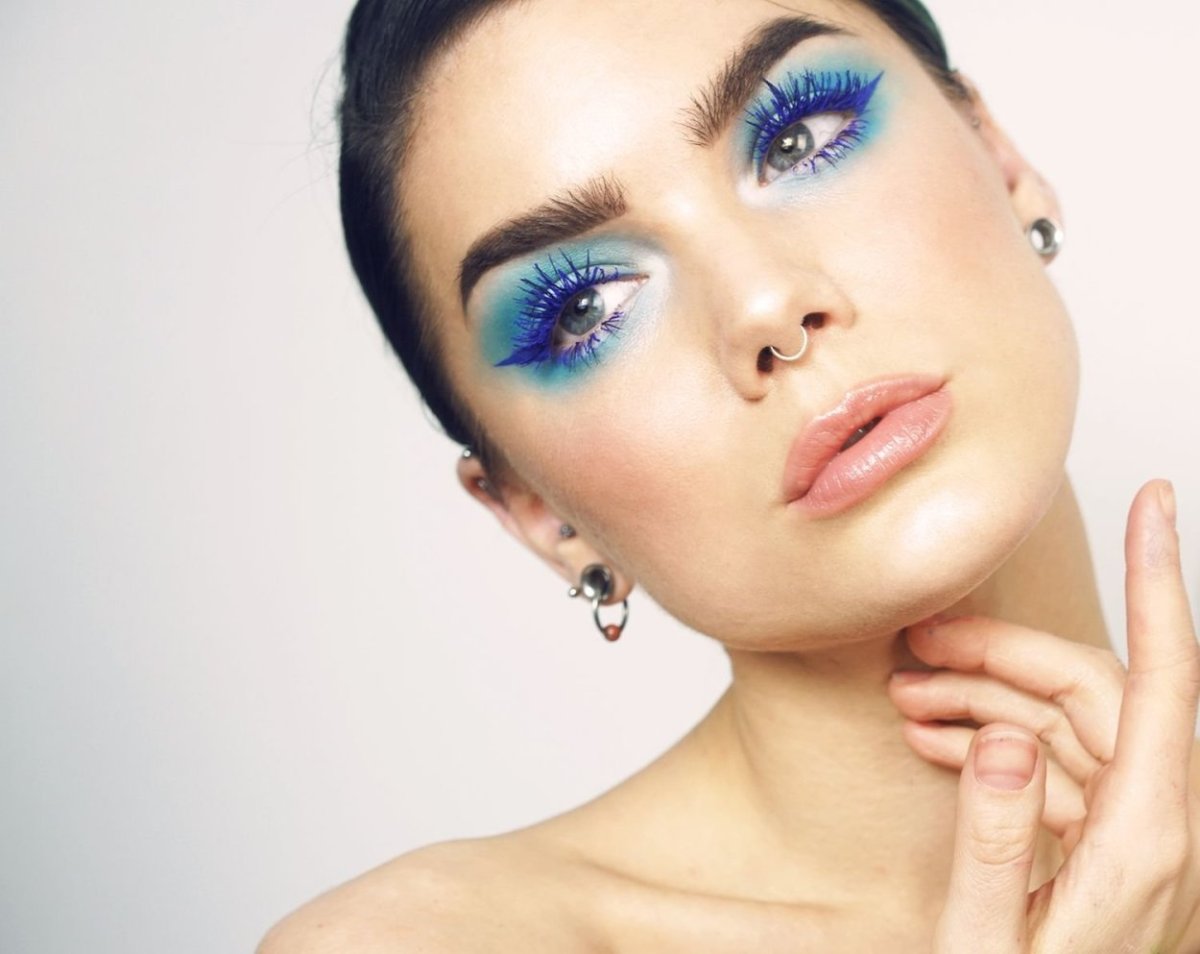 Макияж с синей тушью для карих глаз