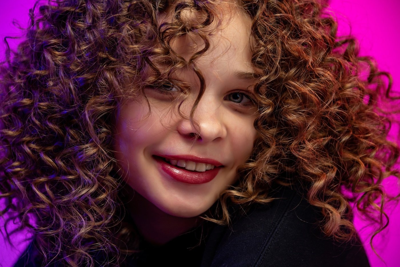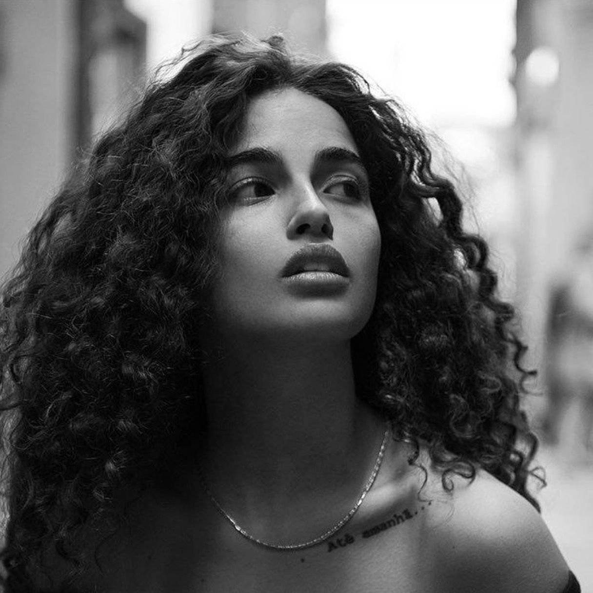 Ее черные, как ночь, волосы, слегка вьющиеся, придают ей загадочность и чарующий образ. Каждая прядь словно создана для того, чтобы подчеркнуть ее прекрасное лицо и эмоциональное выражение глаз.