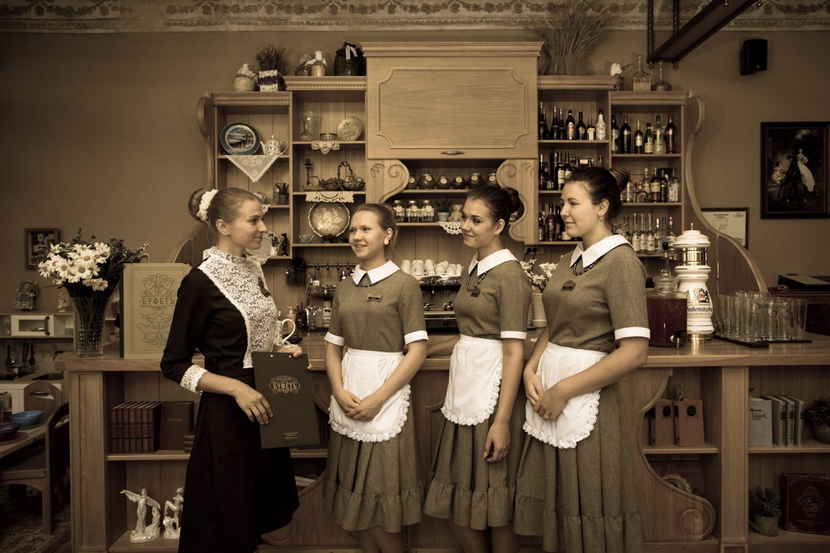 Представьте себе, как будто вы путешествуете во времени и оказываетесь в старинном советском кафе. Перед вами появляется изумительное фото - костюм советской официантки, которая служит гостям с улыбкой на лице.