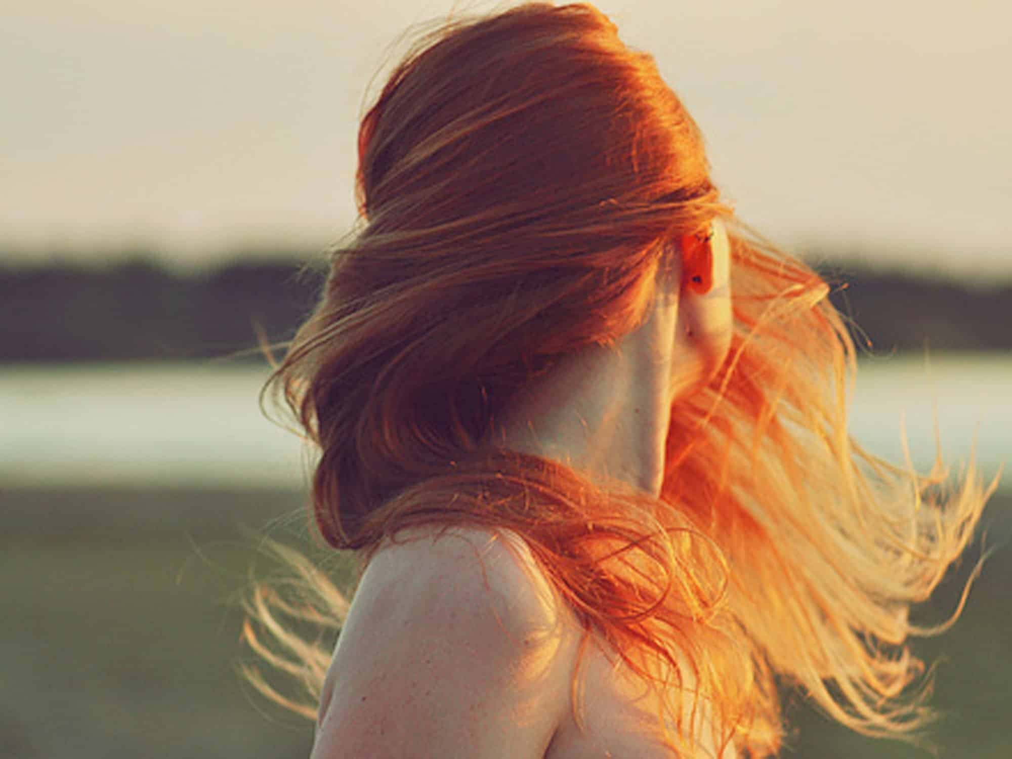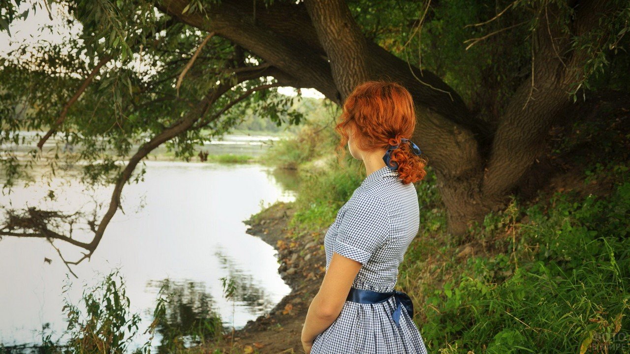 Девушка с рыжими волосами со спины
