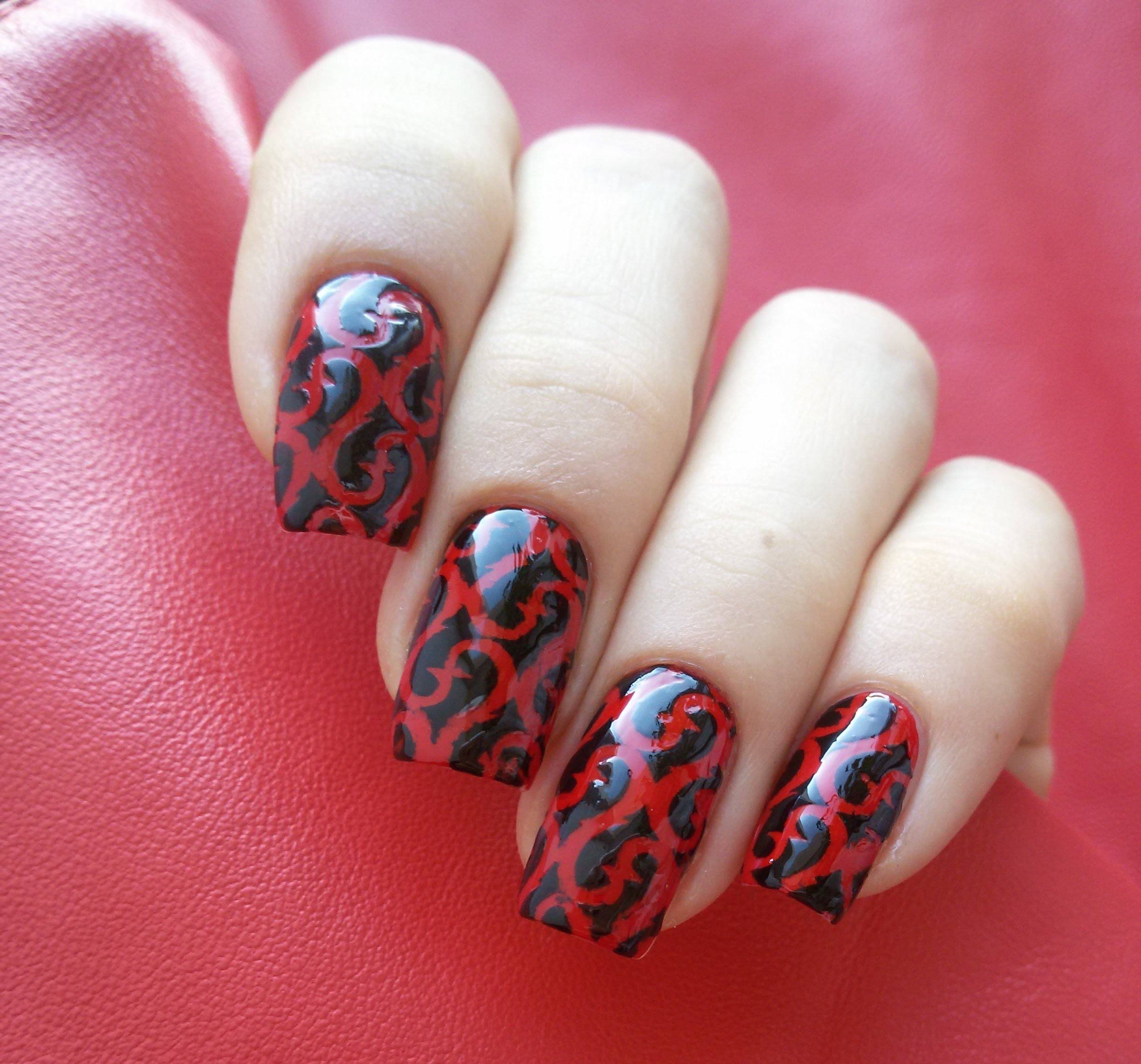 Маникюр стемпинг красный красный с черным