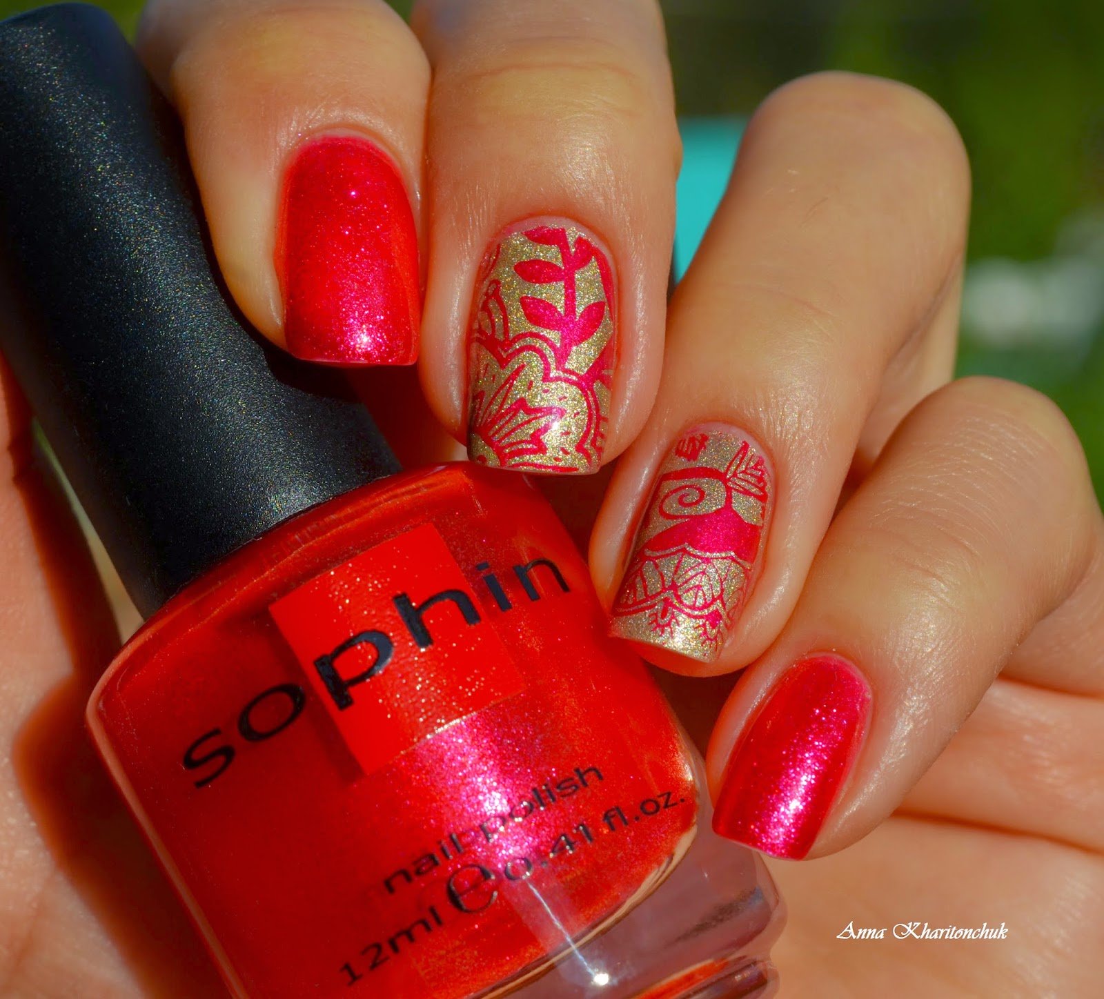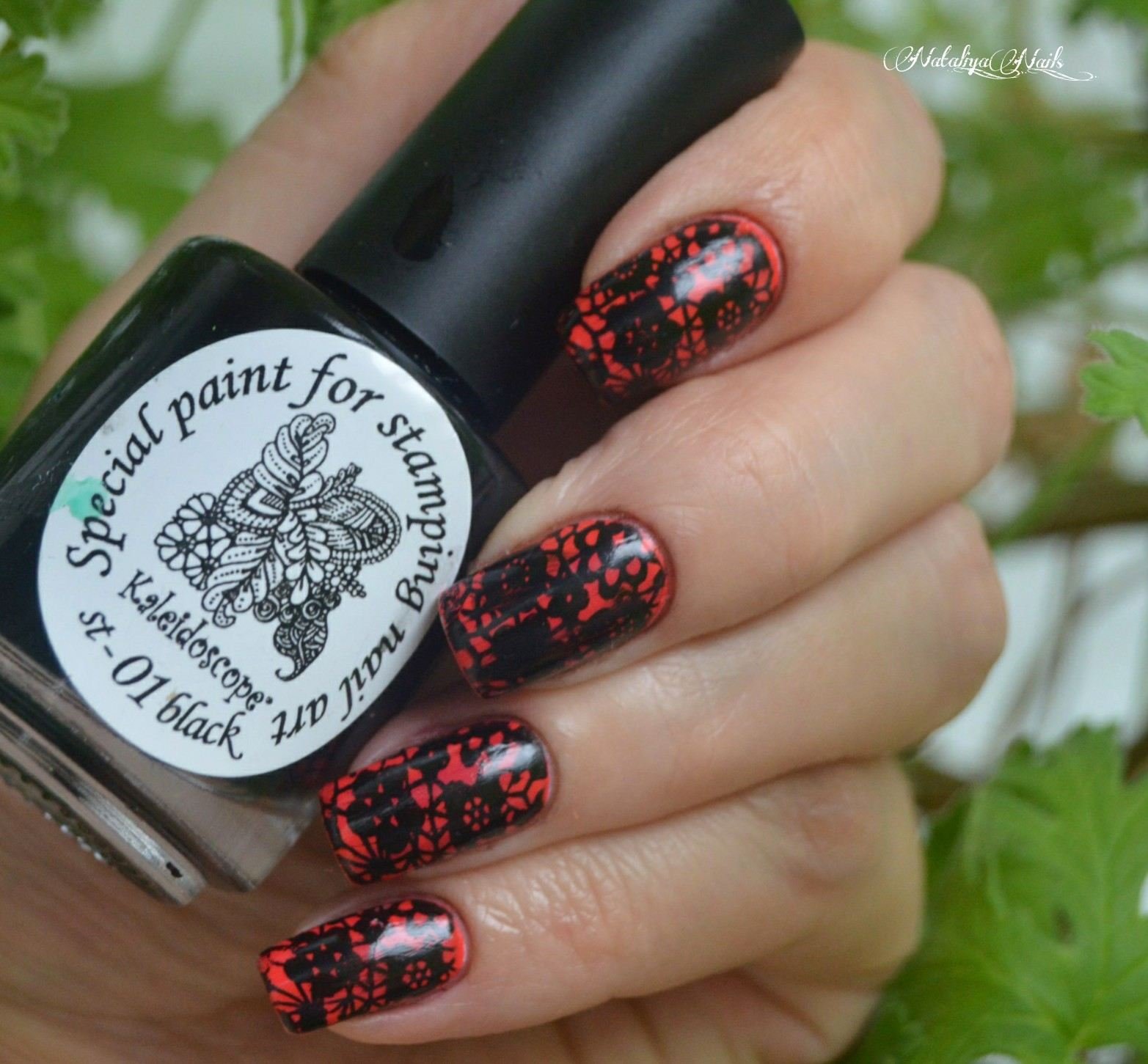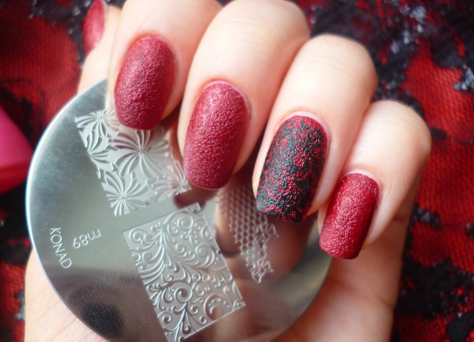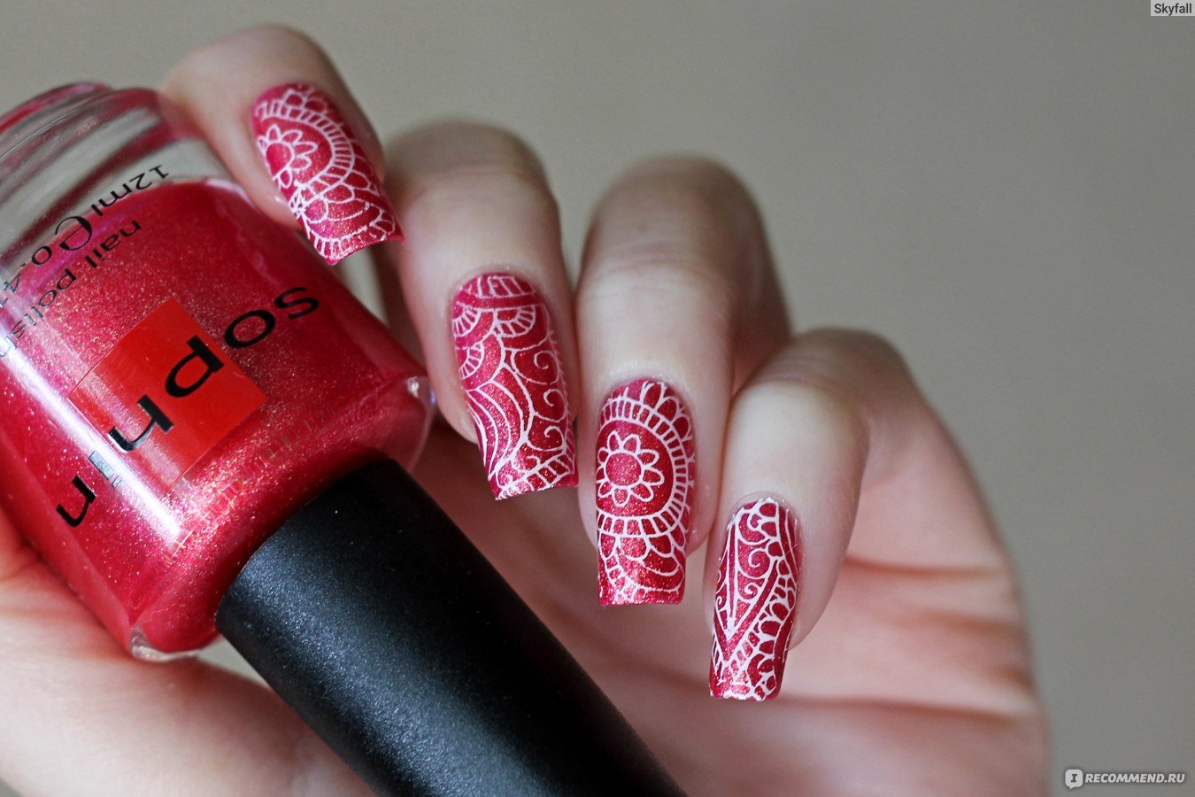 ![Красный лак со стемпингом]()